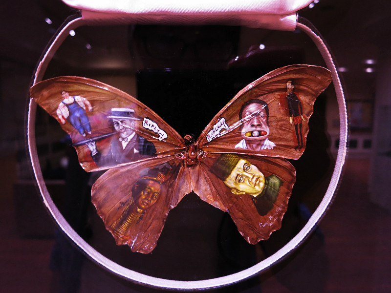 由圣经组成的人像,由海报拼贴的人像,由磁带做成的人像和由烤面包做成的画,很有创意
