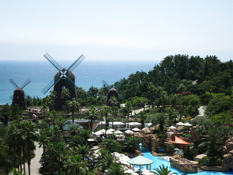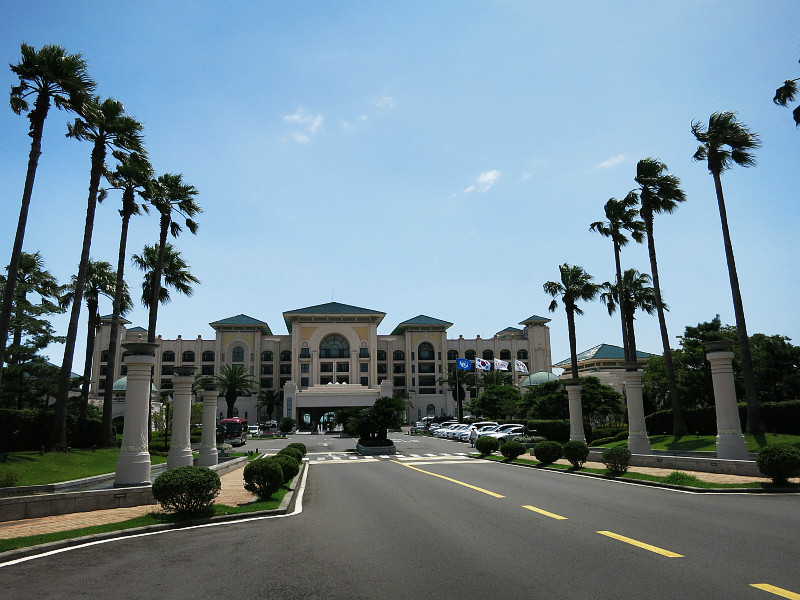 最后一天是比较轻松的行程,一早收拾好行李,退房,将行李寄存在酒店,然后我们坐车去中文旅游区。在济州岛 的这几天虽然每天都是晴天,但是感觉天还是雾蒙蒙的,像有霾一样,能见度没有那么清晰。不过最后一天据说要刮台风,风力倒是挺大,一下子吹散了雾霾,感觉天晴了很多,在公交车上终于看到了云雾中的汉拿山。