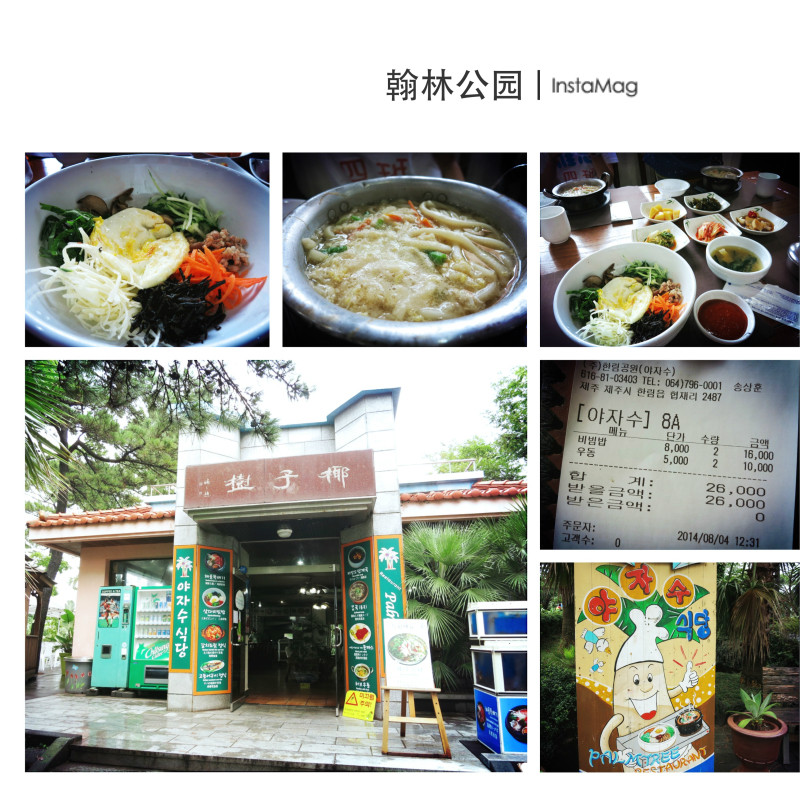 午饭是在公园门口的椰子树餐厅,两碗拌饭,两碗乌冬面,4人消费2万6千韩元。