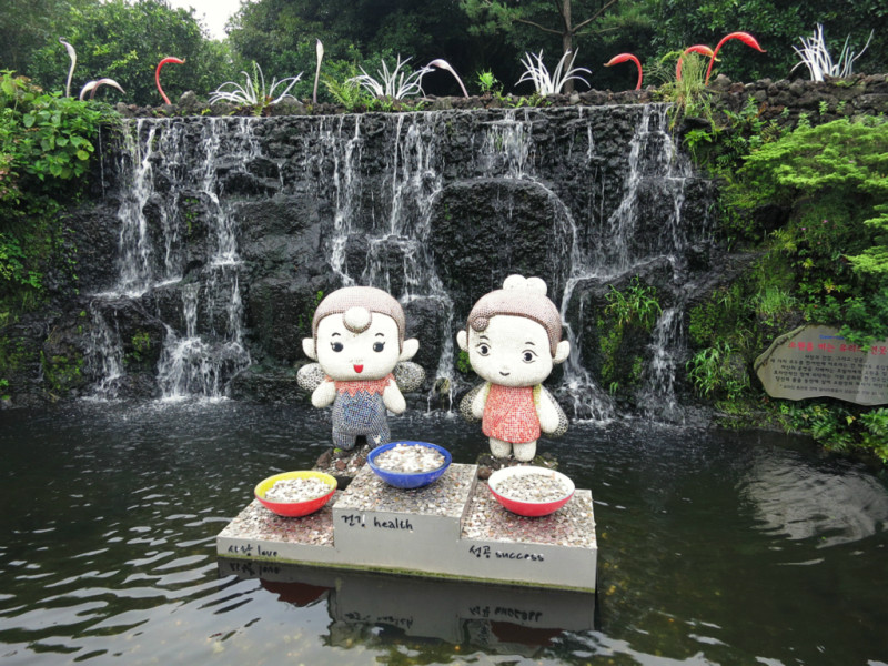 挟才窟。济州岛 这里的“窟”就是溶洞。里面超凉快,由于下了一晚上的雨,里直滴水,灯光只有一种颜色,但依旧可以欣赏到大自然的奇迹。翰林公园 里面溶洞不少,我们看够了,于是就放弃了第二天的万丈窟之行。其实主要还是路程不方便。