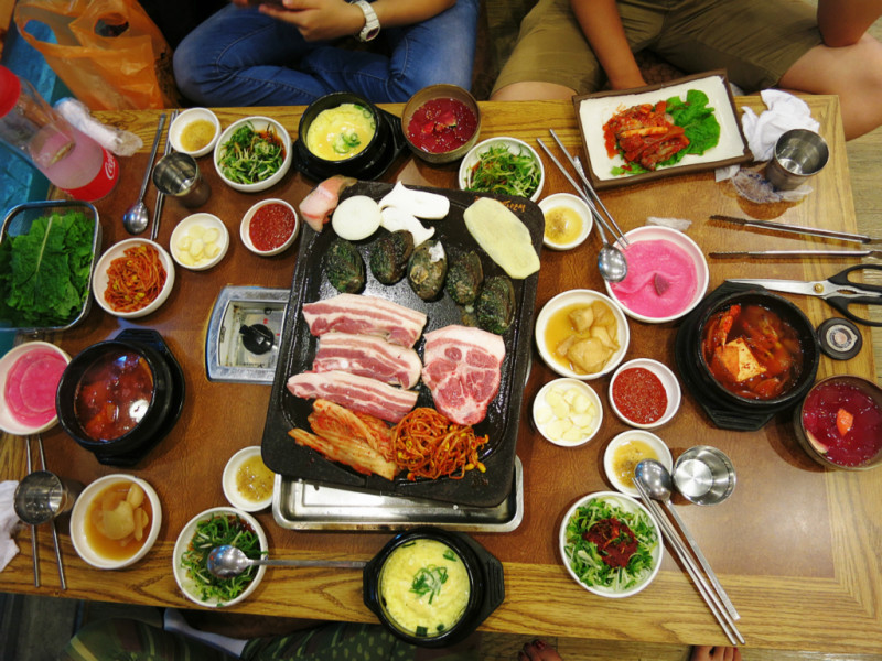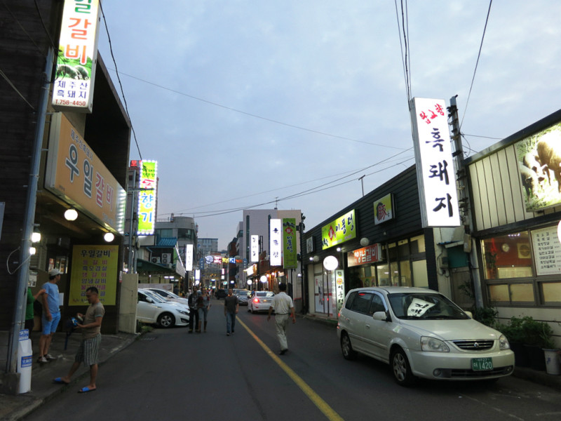 为了省交通费,小伙伴们决定坐公交回去,中途换了一次车,但是还是比较顺利地回到了Bus Terminal。逛了逛中央地下街,晚饭就在附近的黑猪肉一条街吃烤肉。这条街不长,两边加起来大概十几家烤肉店,有名的是街口的这家,人好多,我们没去。