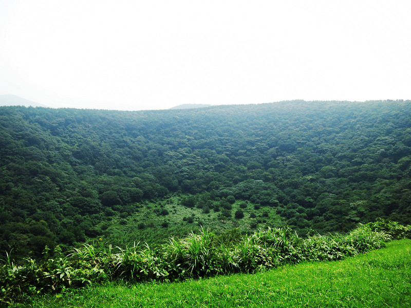 山君不离 是一个火山口 ,山不高,沿路风景非常漂亮,绿油油的一片,加上天气不错,能看到很远的火山口 ,顿时心旷神怡啊。