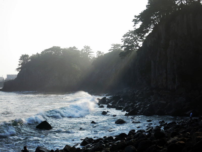 正房瀑布 是一个入海瀑布,还是可以看一看的。旁边的海岸海浪超赞。就是下午去逆光拍照效果不太好。