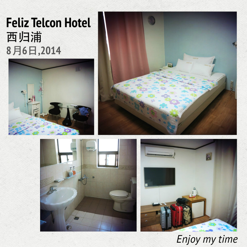 下午乘坐公交780路,去西归浦 市。我们住宿的Feliz Telcon Hotel 就在旧的长途客运站附近。因为不是总站,将站名拍下来,上车的时候给司机看还是挺有用的。