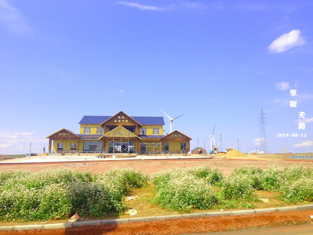 大门西侧,我注意到这个在建的服务区,左边的小屋子上写着:售票口!看来免费的午餐将要结束,这里也将要步入收费的节奏,随着草原天路自驾游的持续升温,不久的将来恐怕要被商业化。。。