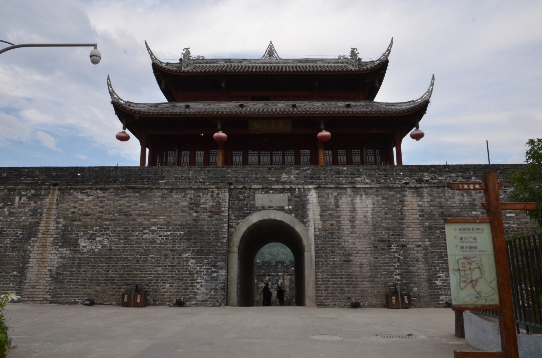 青川青溪古城城形如靴,又称“靴城”。其内城门不与外城门相对,门开侧面,内城门上建有距地四丈五的重檐城楼,戌守嘹望,显示边陲雄姿。城内分东南西北四大街和下东街、下南街、石板铺面。