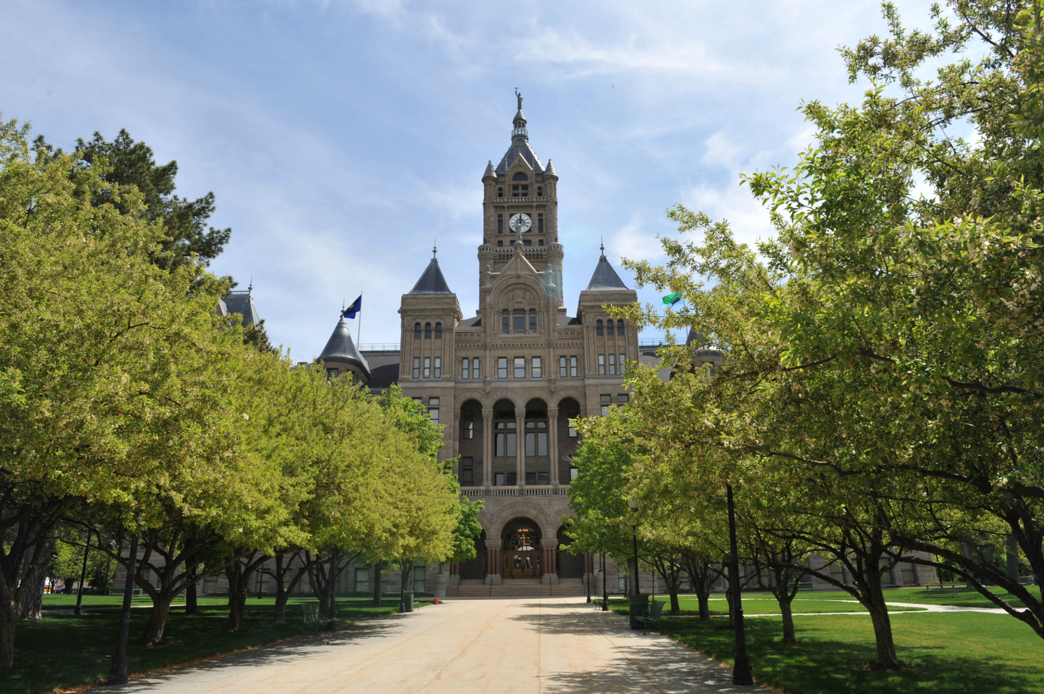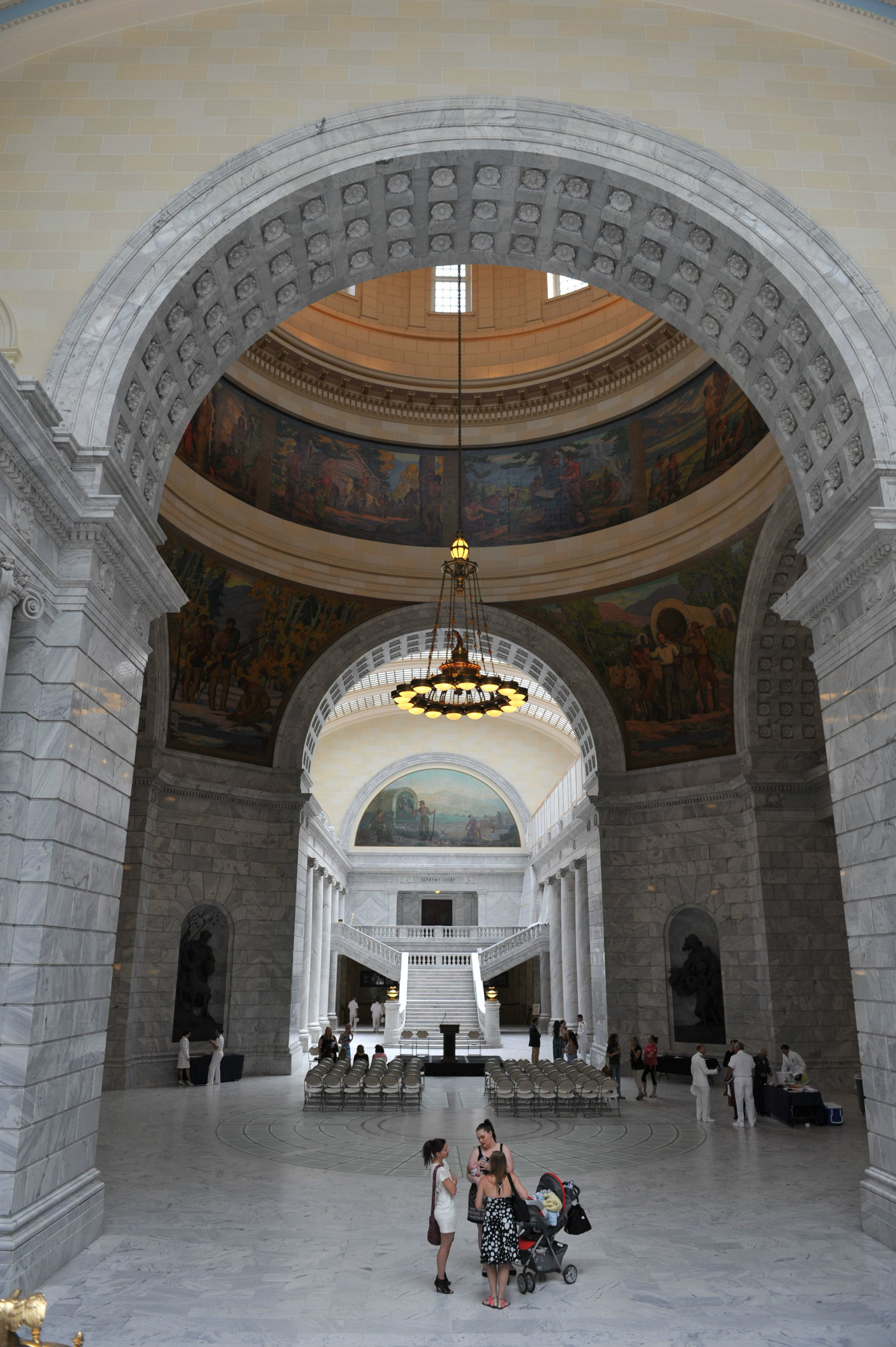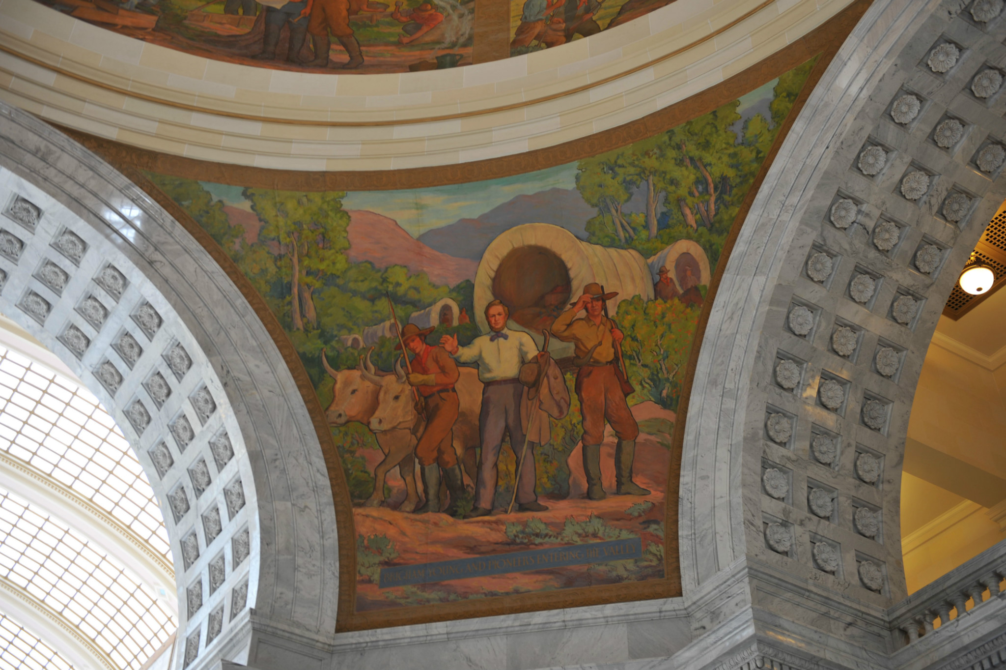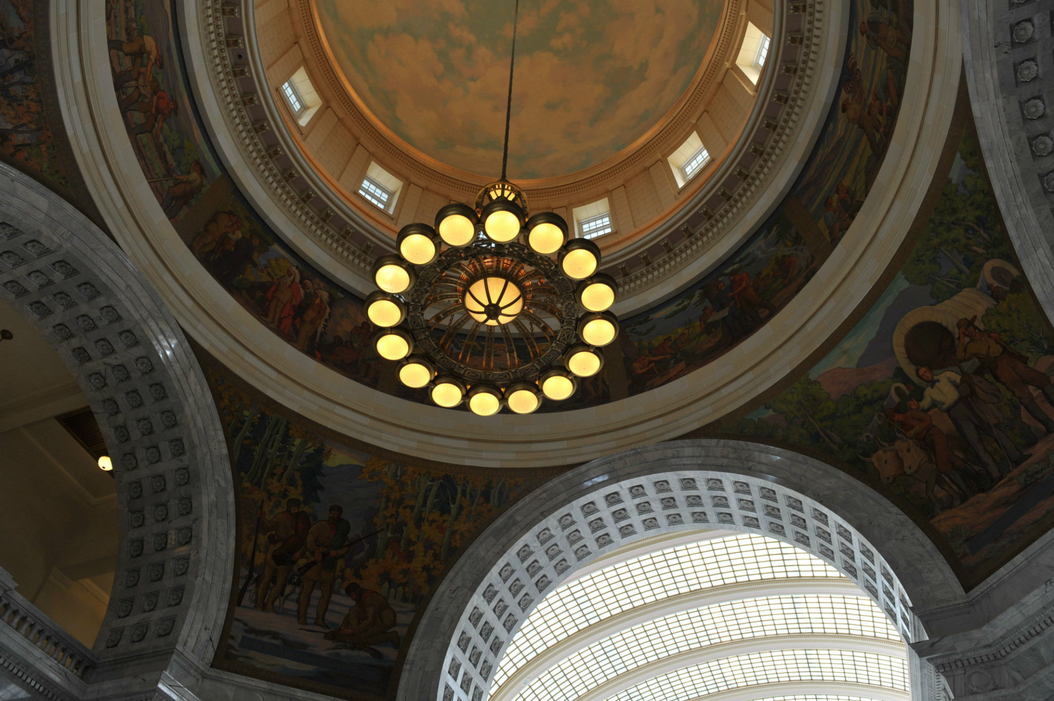 年建成,建筑体现出与摩门教对抗的风格。市政厅里面很高大华丽,所有墙面都镶嵌天然理石。纵观大厅,圆形的穹顶,穹顶上和四个拱形交叉角都有象征城市建设和先人奋斗景象的彩色壁画。感觉气势恢宏。
