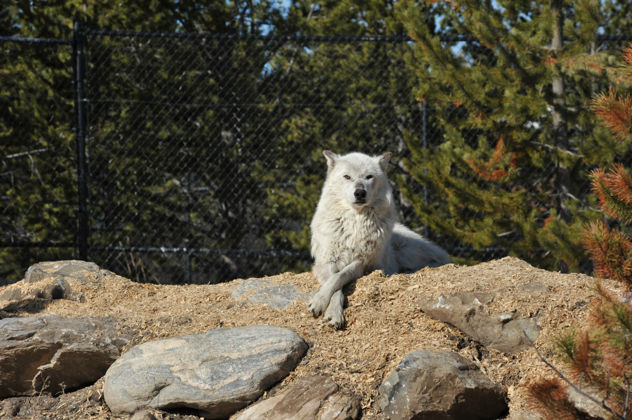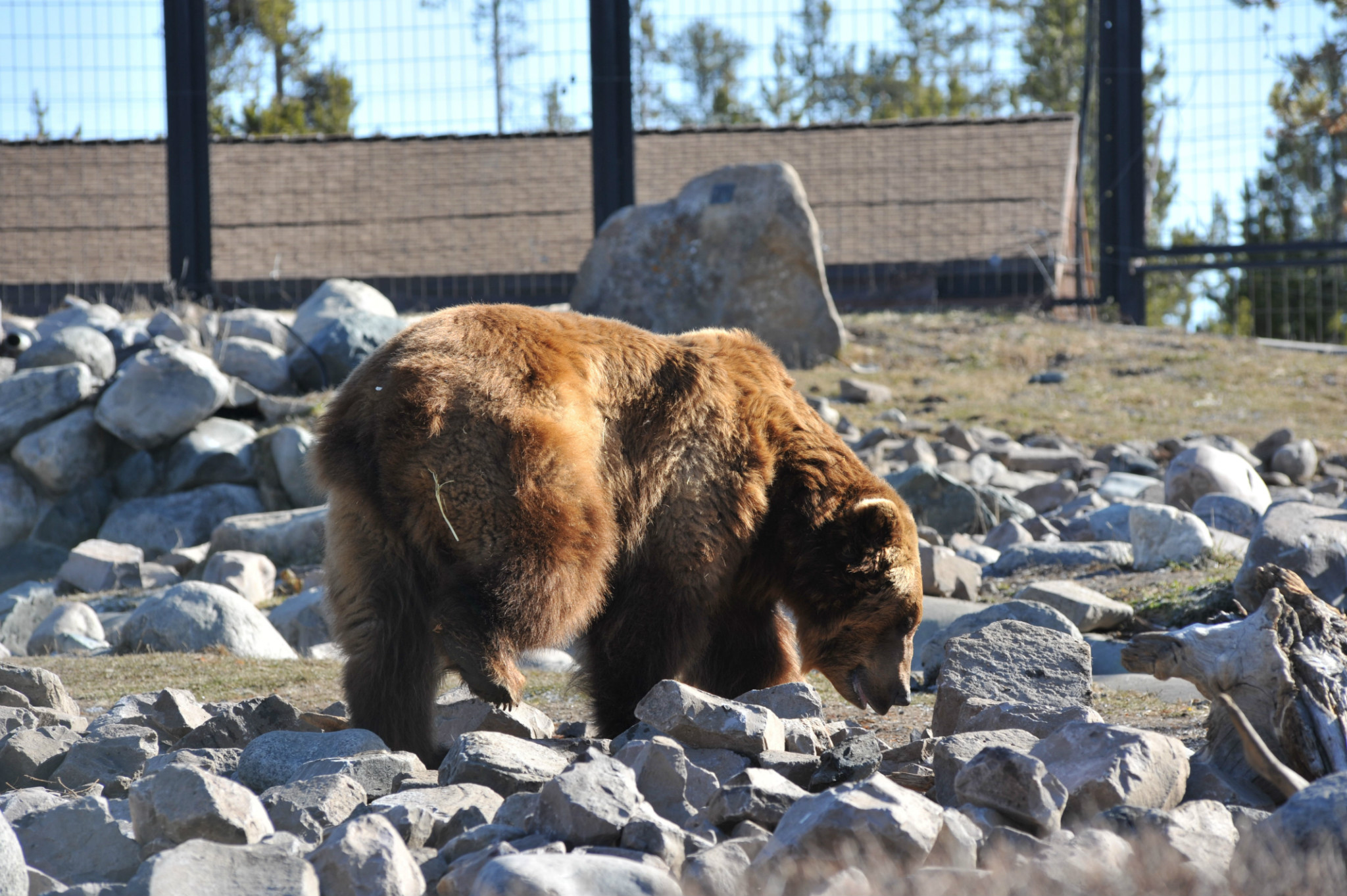 早餐后退房。因没在黄石 里看到期盼的黑熊、灰狼,导游临时安排去西黄石 镇熊狼公园参观,每人$10.5。内有大熊2只及多只灰狼,均体形庞大,姿态漂亮,也算满足心愿啦。结束直接出发去大提顿国家公园 ,途中田园广阔,蓝天白云,远处雪山。在途中雪山处观看人们高山滑雪运动场面,先爬山到山顶,然后从山峰滑雪板下降。
