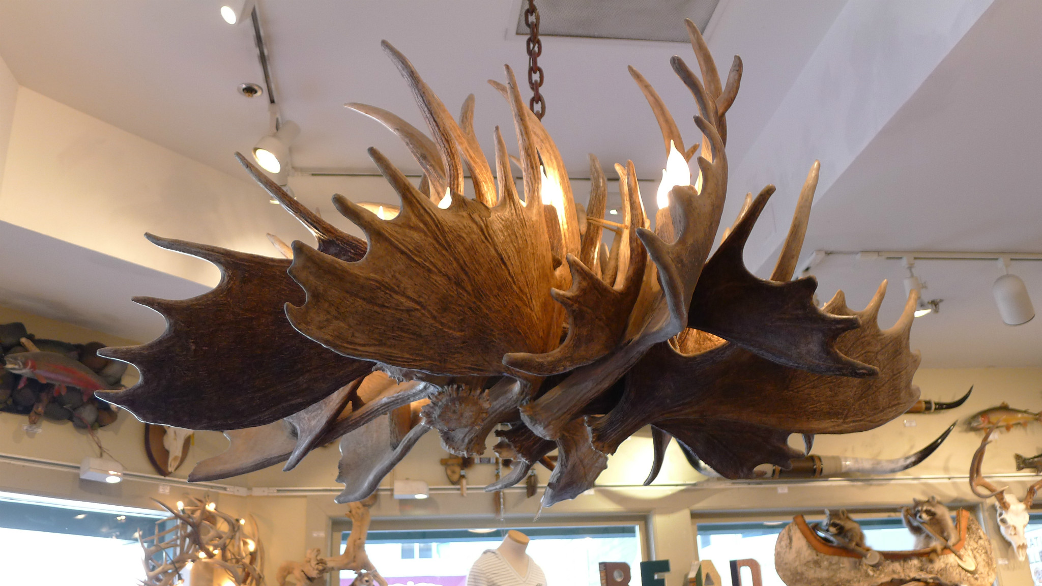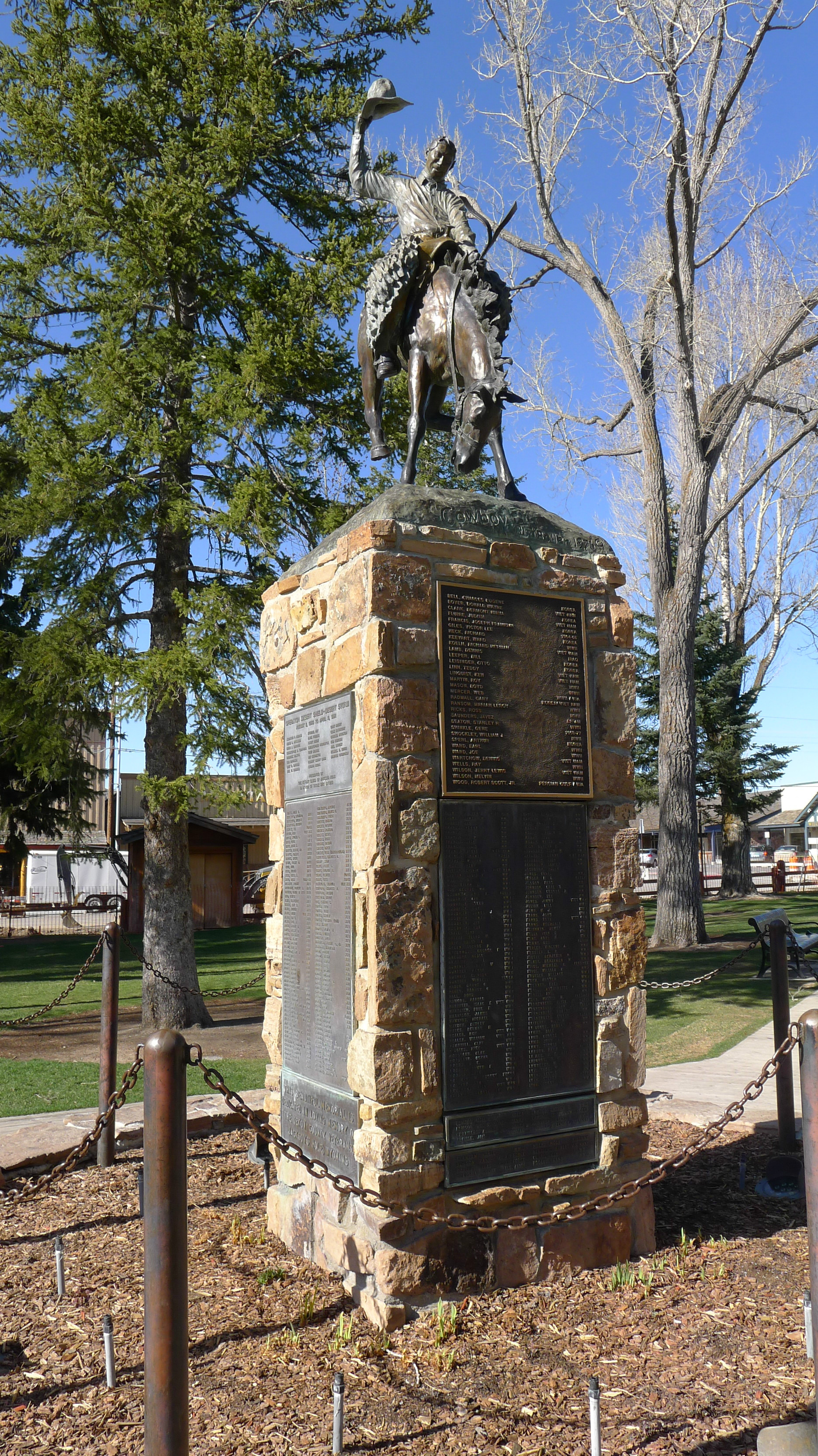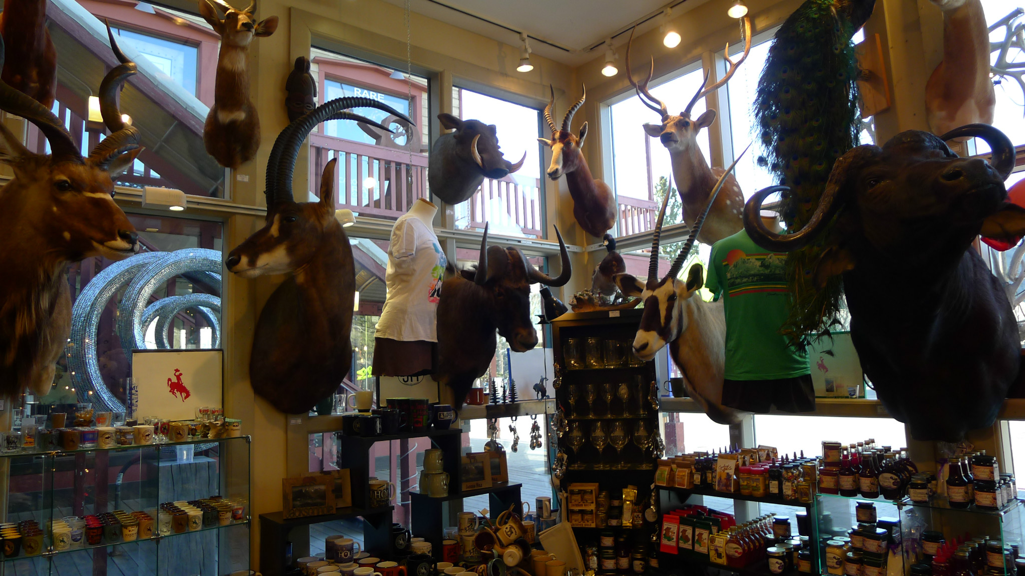 返回到杰克逊小镇 ,先到地标建筑鹿角公园 游览。一个巴掌大小的公园,四角矗立着巨大的鹿角堆砌起来的拱门,散发着独特的魅力。每年春天时,7500头麋鹿的鹿角就会脱落,然后长出一副新的来。童子军们收集鹿角在1960年堆砌出拱门。鹿角也成为这里各种装饰。