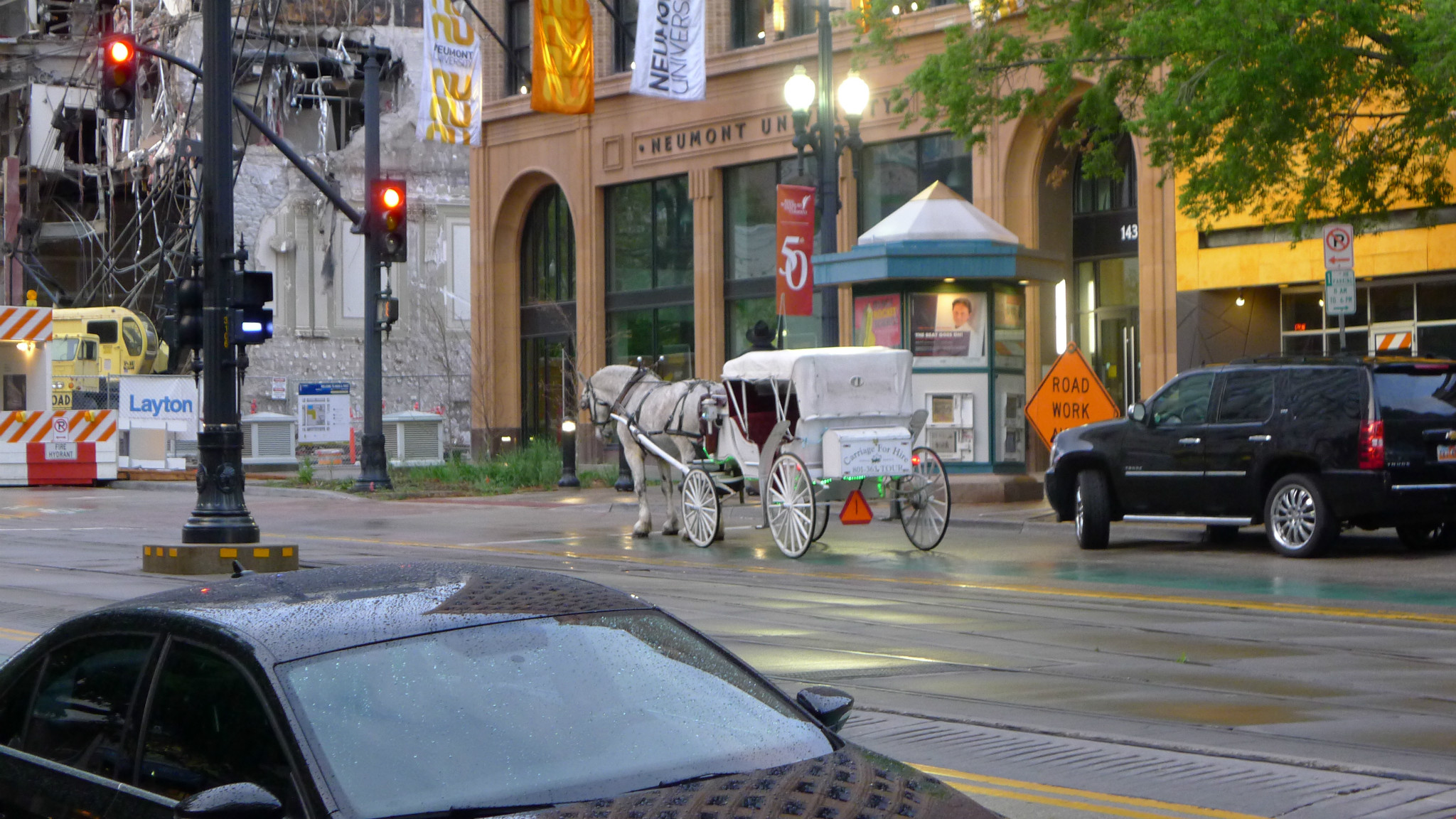 晚9:00乘坐观光马车在市中心区游览,马车及马夫均英俊漂亮,40美元+10美元小费。晚10:30回到酒店。