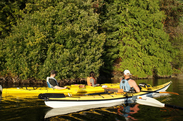 中间那位长得略像马特达蒙的哥们儿是我们请的kayaking的向导兼教练,人很nice,也很健谈,一路上一直在不停地解说,听他说不久他会在冰岛的高山上向他的女朋友求婚,真心祝他如愿~ 他就是因为喜欢kayaking这项运动,一次偶然的机会来到Galiano Island(/poi/8471563.html),也被这里的美景深深地吸引,就留下了从事他最喜欢的kayaking运动,生活不应该就是这样吗?随心,在自己喜欢的地方坐着自己喜欢的事情,但是我们有多少人能够达到这样的理想状态呢