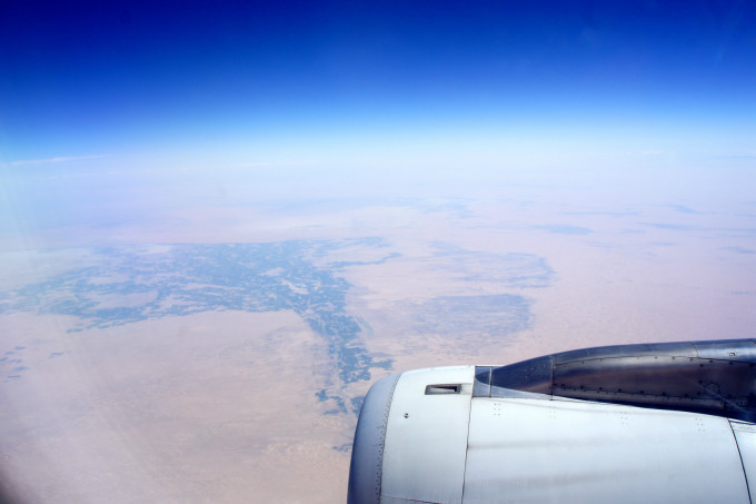 飞了大概20多分钟,一眼望下去,总是沙漠和斑驳的绿洲相映。