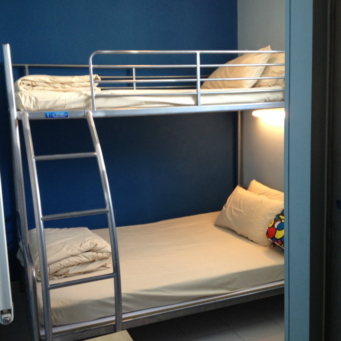 看到萌萌的高低铺,顿觉很满意,这也是旅途中条件最好的一晚住宿,值得一提的是,洗澡水很大。前台有电脑可以查阅信息,小黑板上可以写拼车信息。