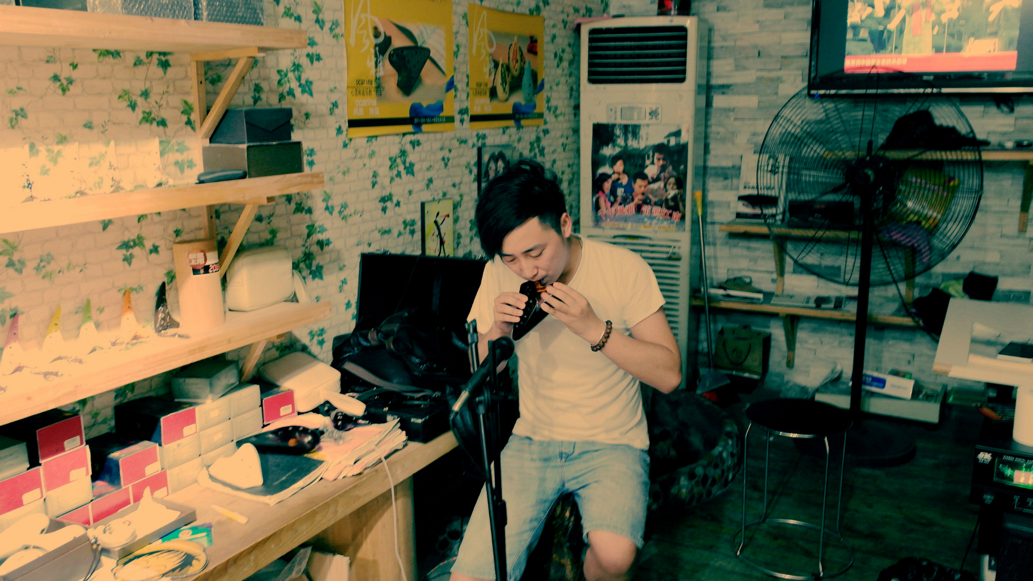 小伙子很帅,吹的陶笛很好听。