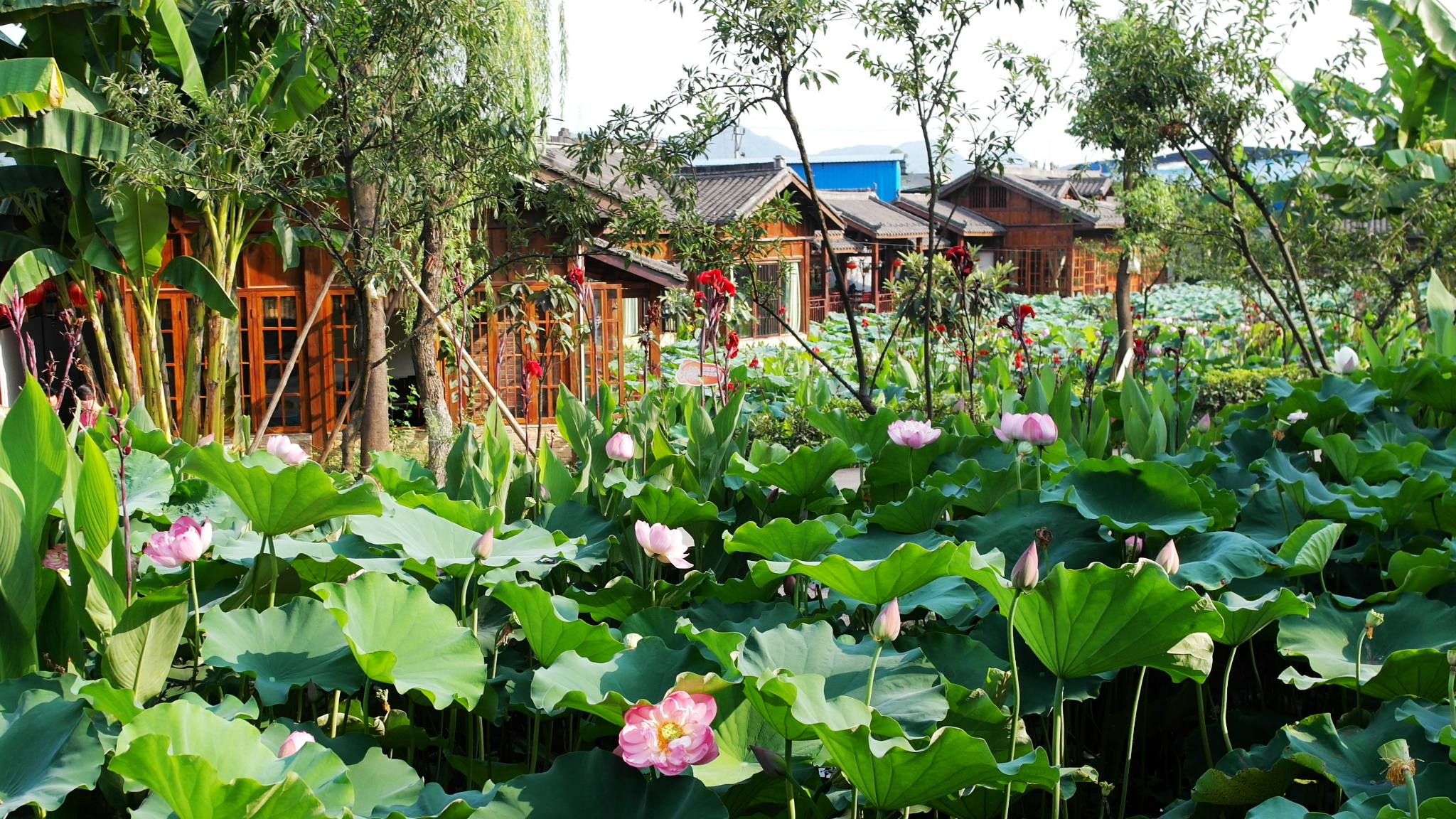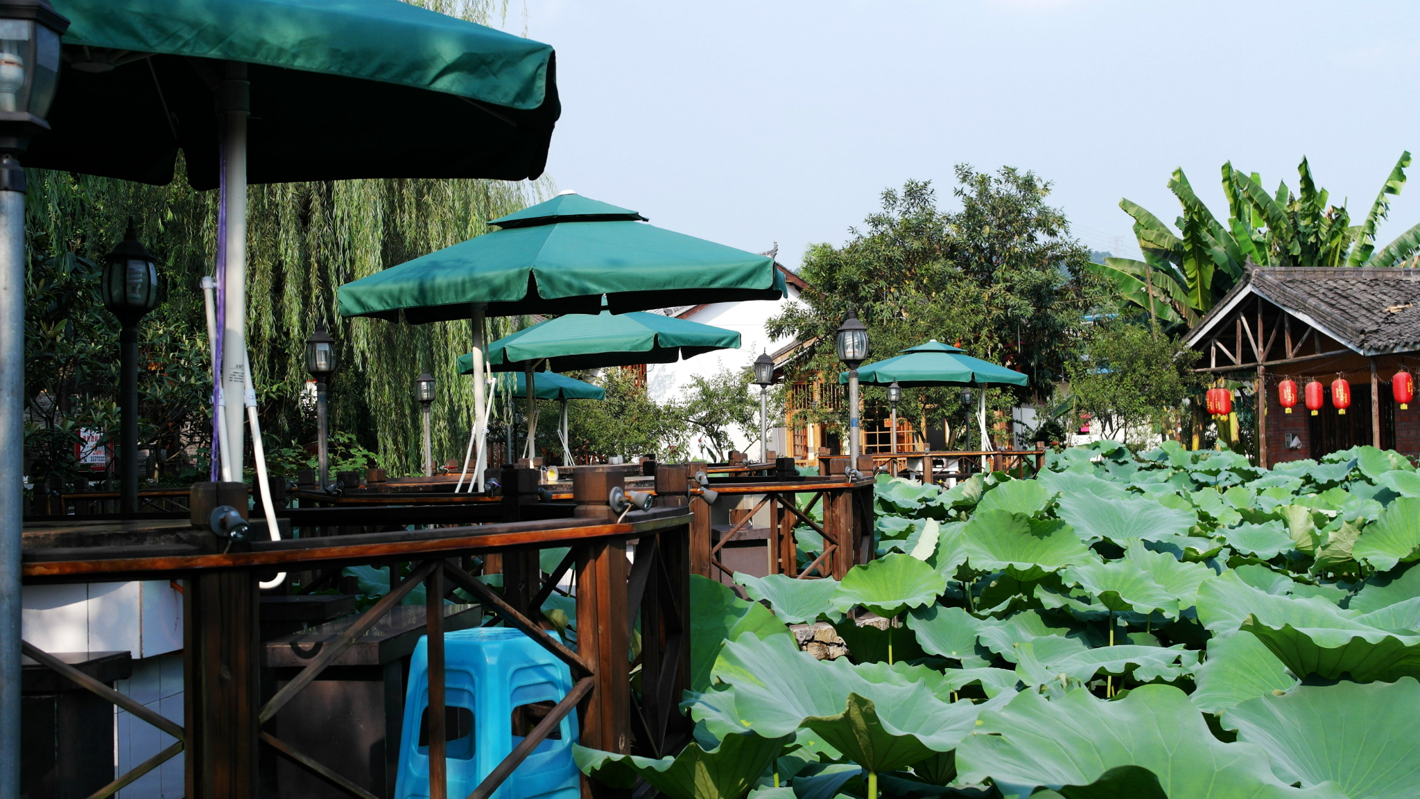 半山腰的荷花池,露天火锅,很有意思。