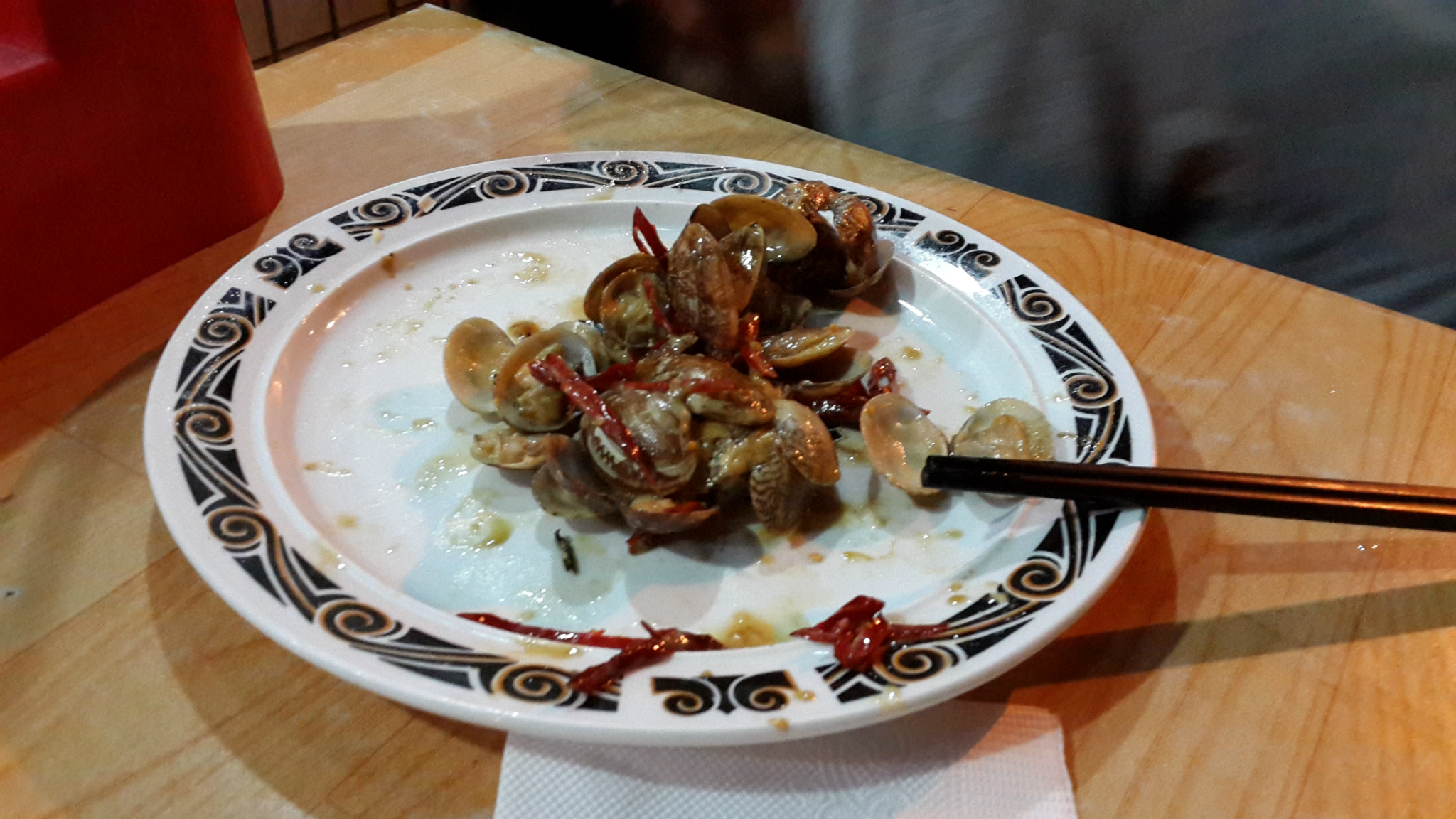 小家伙自己在剥毛豆皮吃,辣炒蛤蜊太好吃,我想起拍照的时候已经吃掉半盘子了。