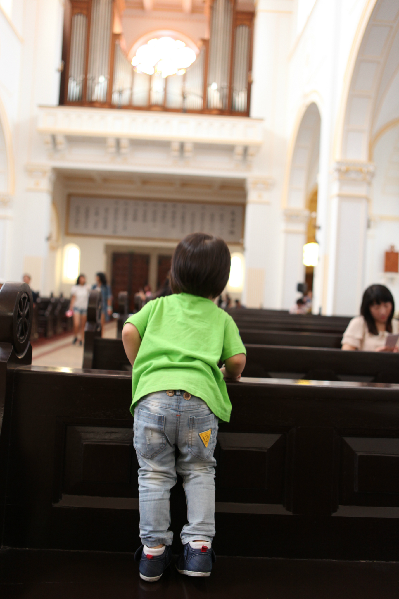 教堂门口是大批大批的拍摄婚纱照的新人,太熙攘了。eason太小跑来跑去,总是入镜,被人家说了几次觉得没有意思,我们就往回走了。