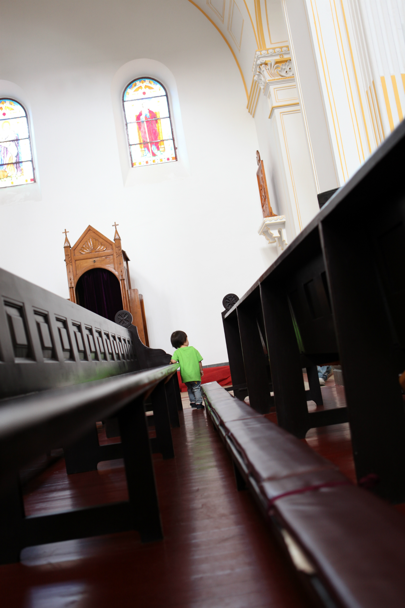 今天要退房换酒店,早上起来,eason爸爸赖床。于是我带着eason去附近的天主教堂转转顺便吃早餐。KFC里沉思的娃,你想啥呢?