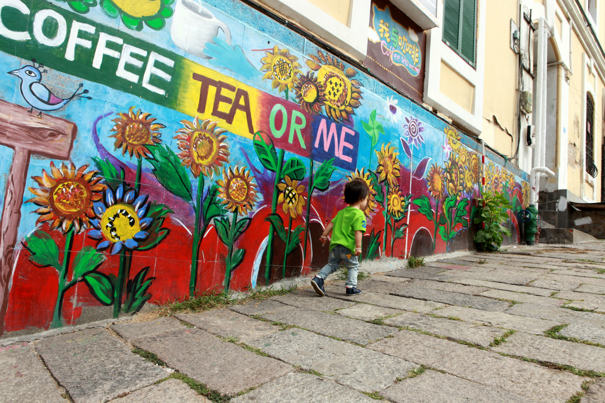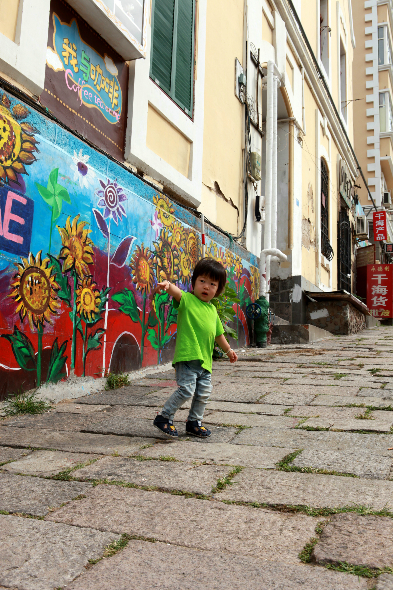 出了KFC就是一个斜斜的坡道,用石头铺成,因为有年代的原因,从石缝里钻出很多杂草。