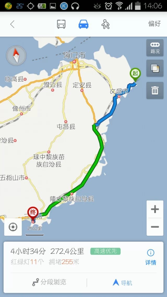 文昌到三亚走高速之前还有四五十公里的省道,尽量白天走,晚上走危险系数比较大。