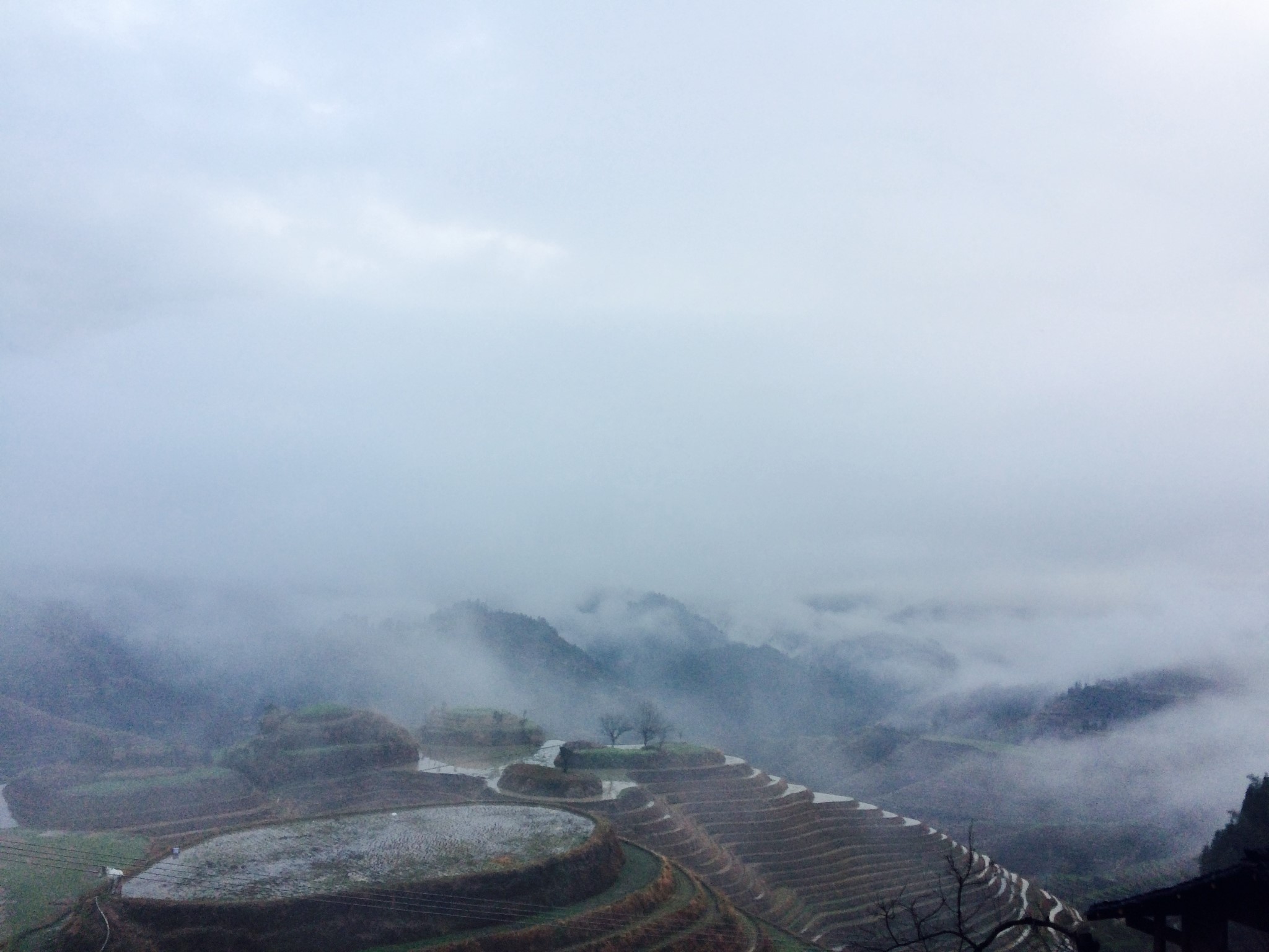 【下图朋友摄于2015年2月20日】:雾中龙脊很美!3月雾气更胜一筹