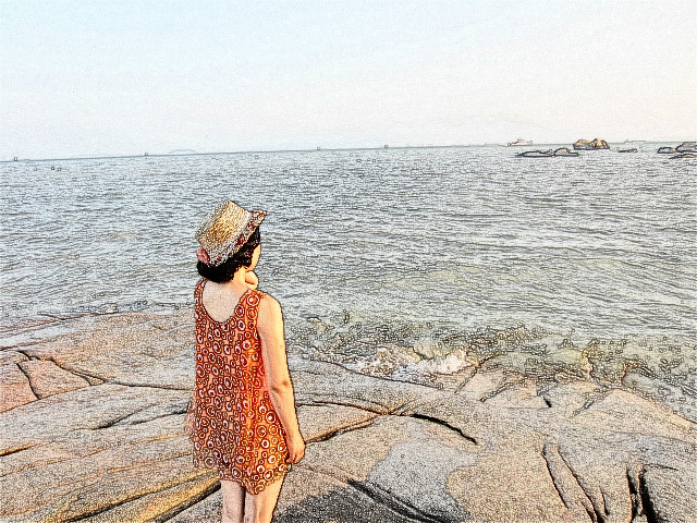 这样的宁静中,海浪的声音让我有片刻的出神,觉得自己渺小得近乎可悲。
