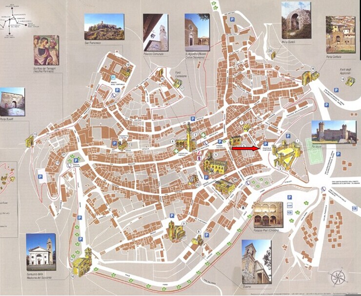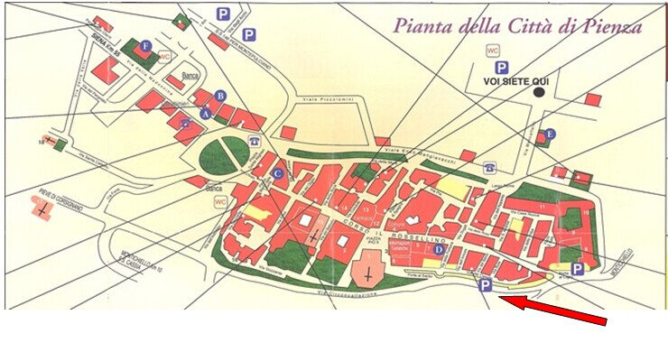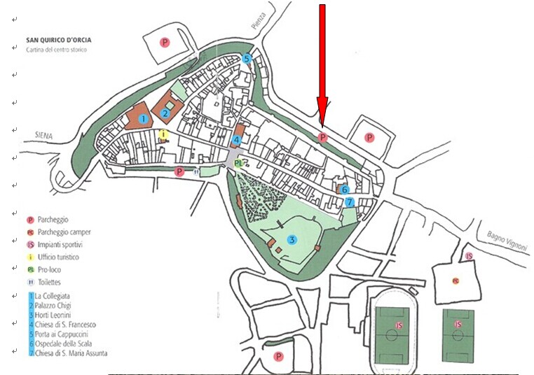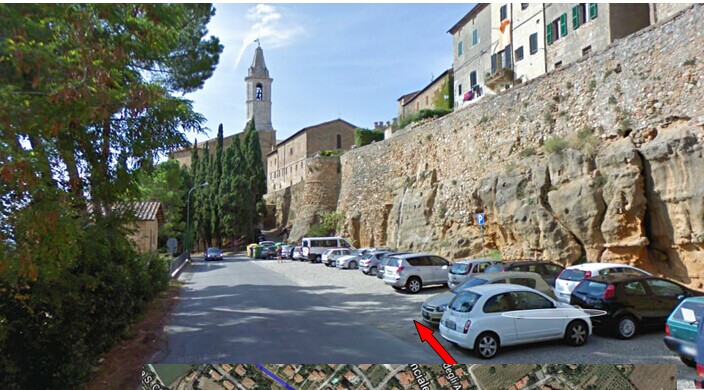 上面的就是蒙塔尔奇诺(montalcino)地图,可以看见红色箭头指向的停车场