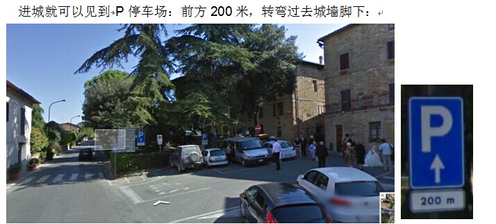 上面的,是托斯卡纳地区的蒙塔尔奇诺(montalcino),按照箭头指示走,就是停车场,