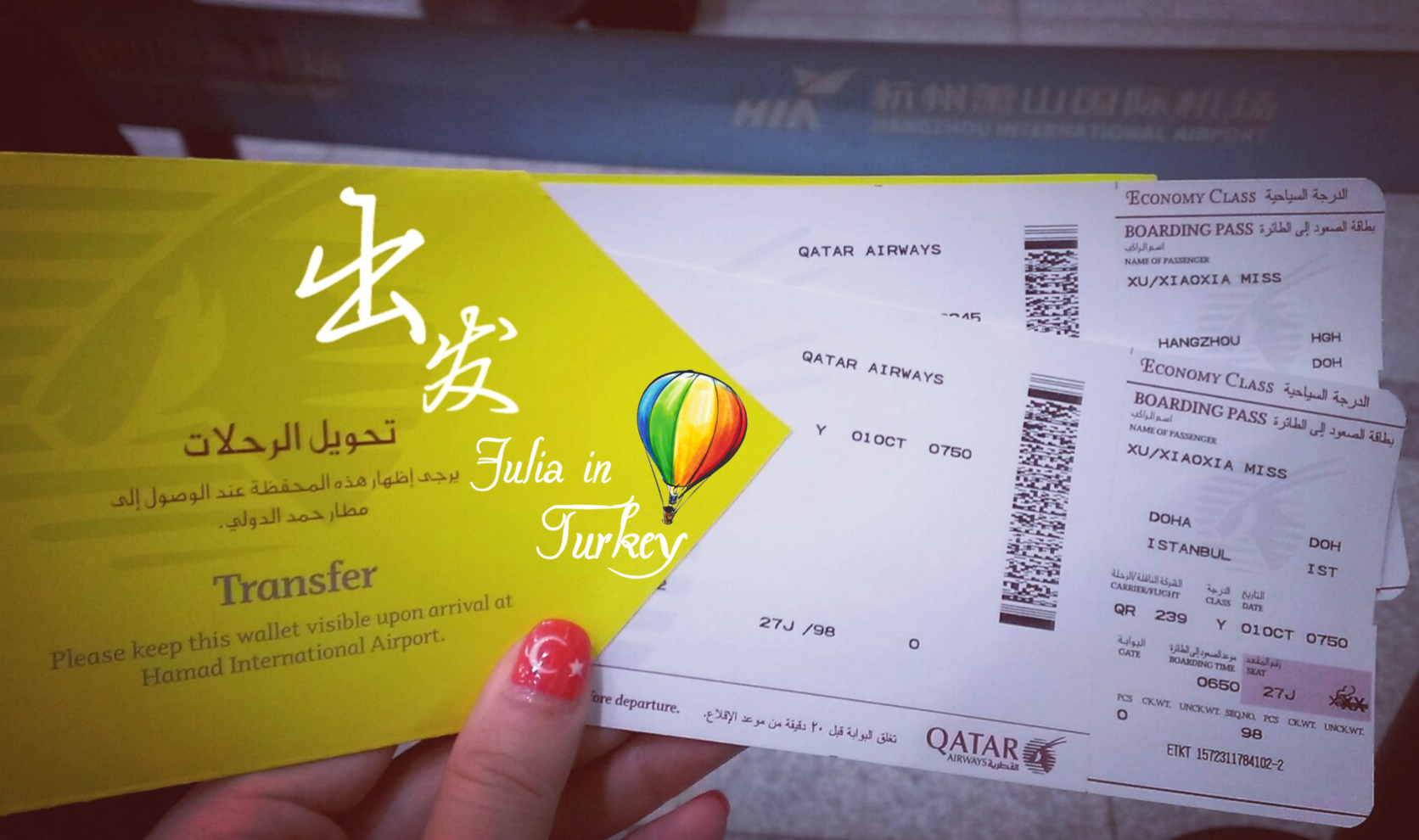 换好卡塔尔的联程机票 怀着兴奋而又忐忑的心情 准备粗发!
