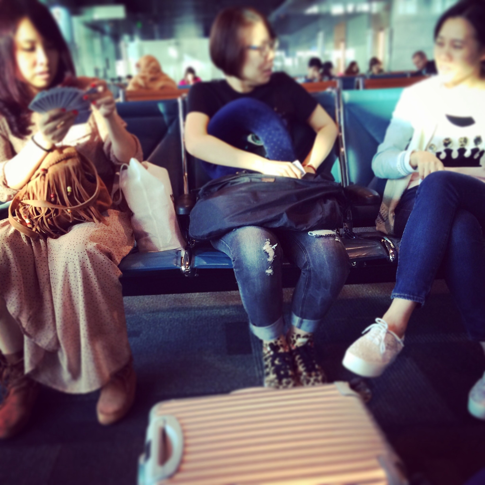 转机厅里甚是无聊~多谢小宝提供了两副扑克牌&becky友情赞助的行李箱牌桌 让我们得以消磨漫长的候机时间~你们造我打牌有多搞siao么?小宝深有体会哦~