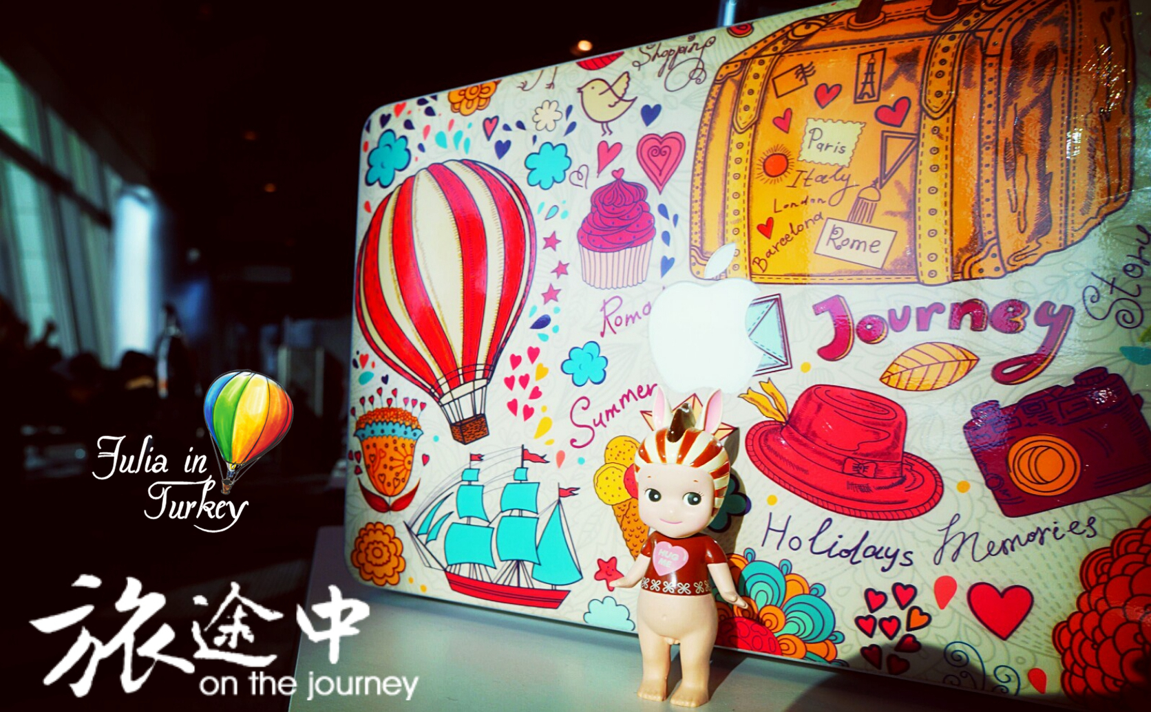 多么应景的笔记本保护贴膜 此次旅途的重要组成因素还真是一个个在上面体现了哦 热气球 游轮……