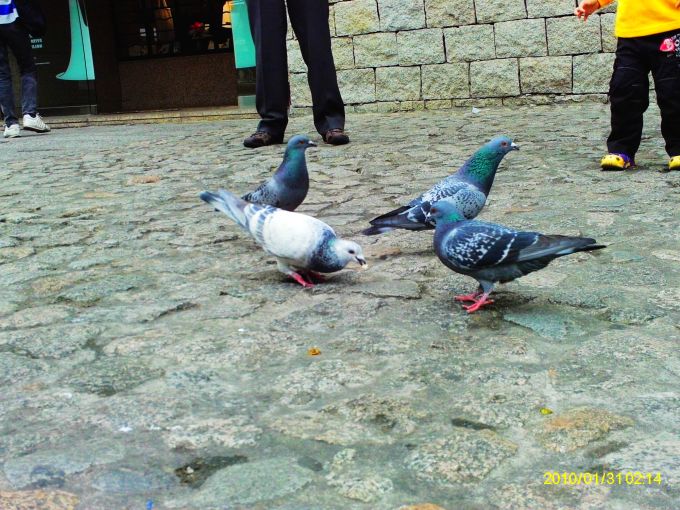 已经看到大三巴了,彩色的鸽子