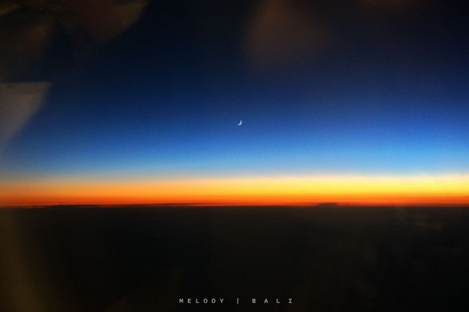 飞机上小憩,一睁眼被绝美的余晖和弯月震撼到。