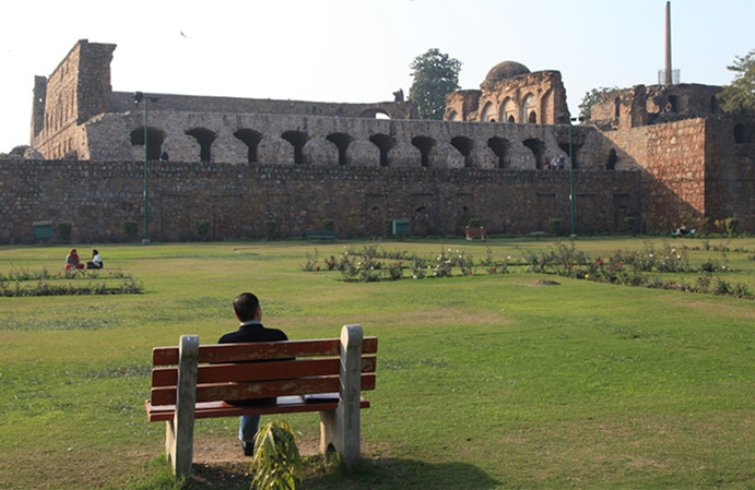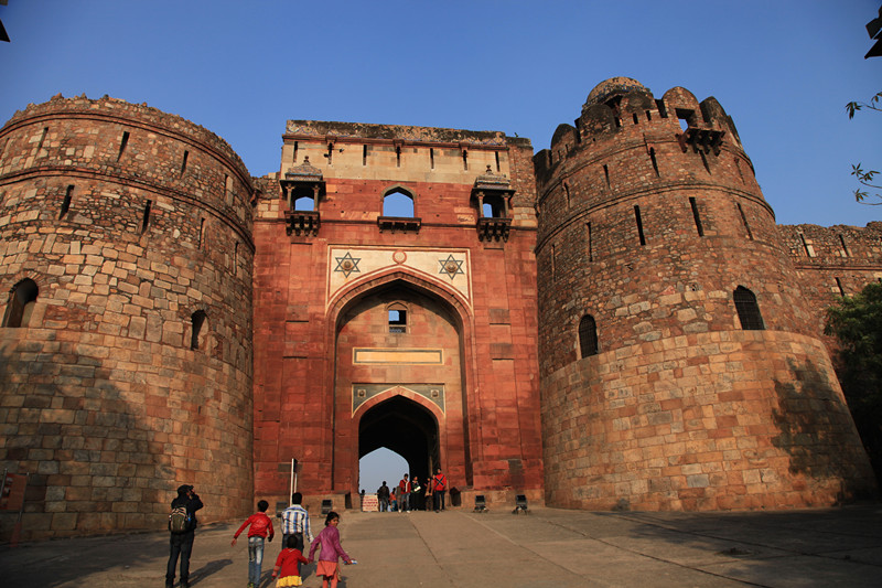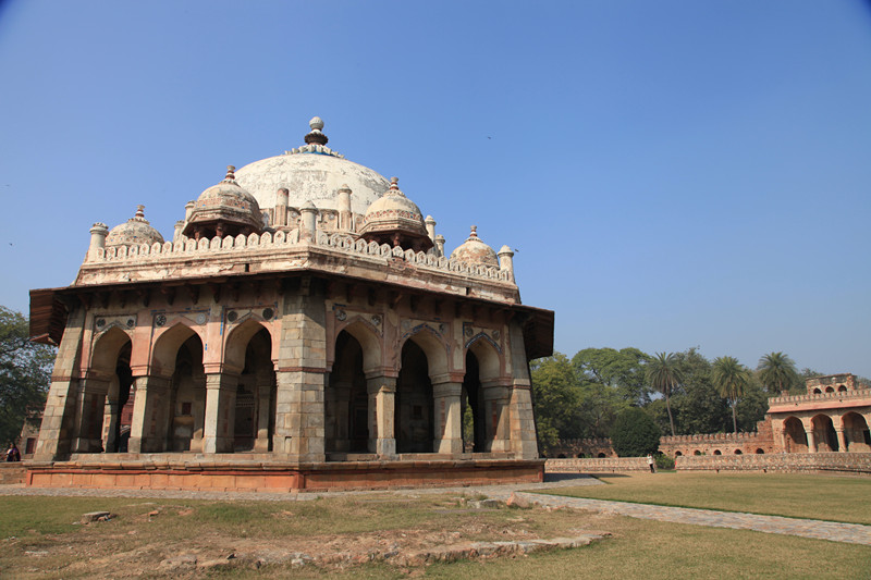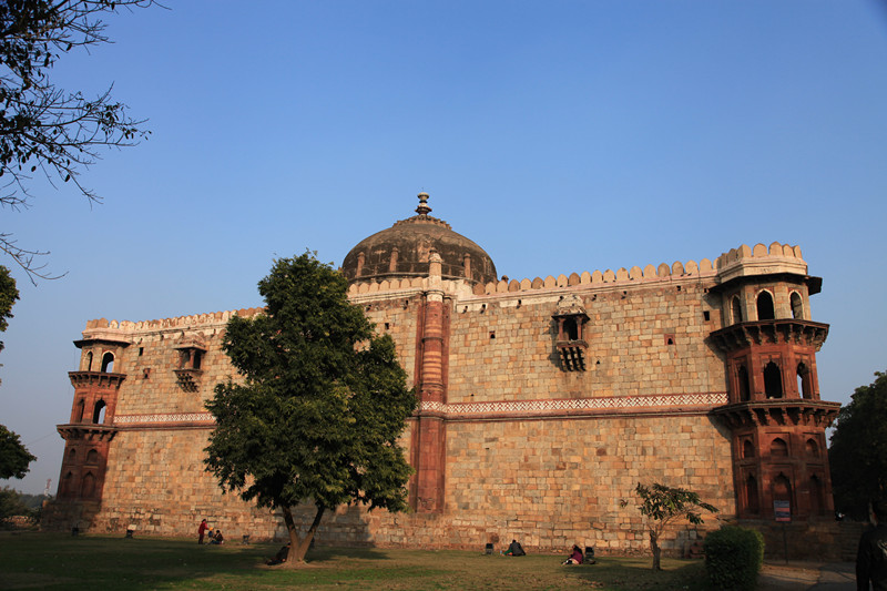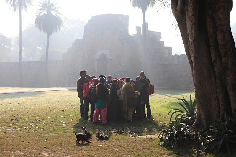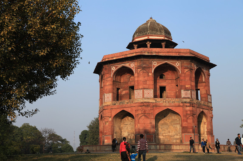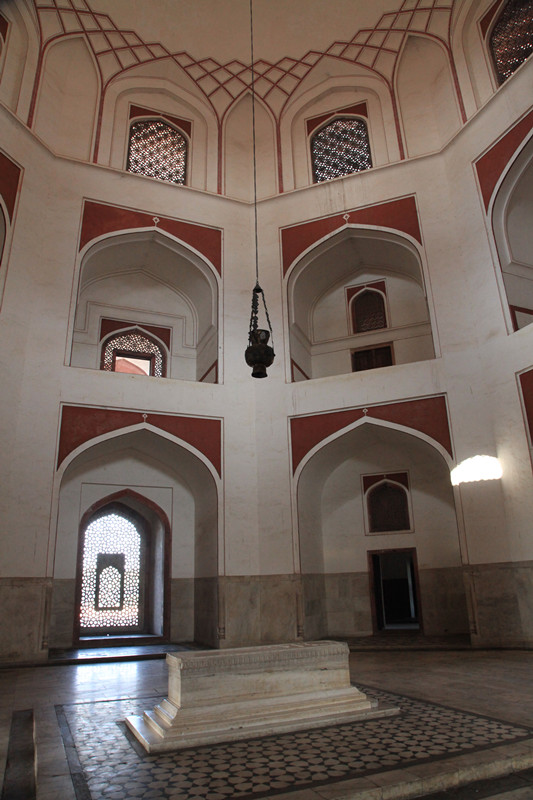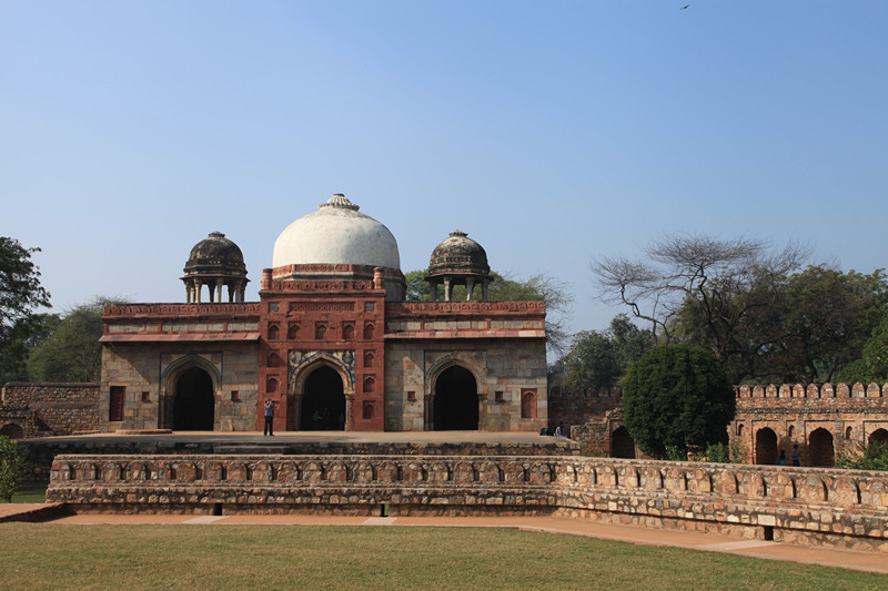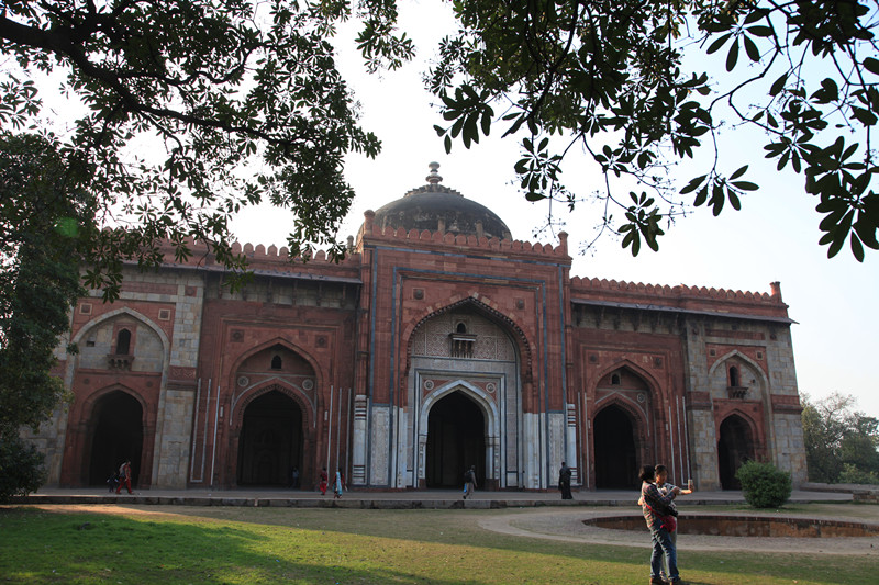 书上介绍,游览胡马雍陵的最佳时间是下午的日落时分,我们早上来,陵墓的正面朝西,整个一大逆光,但优点是人少,看得比较悠闲。