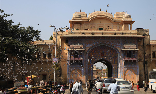 另一个角度看皇宫,印度的古建筑的圆顶上空总有很多鸟在盘旋,近看就是乌鸦,但他们认为是吉祥的象征,藏民好像也很喜欢乌鸦,我去过的四川和云南对乌鸦的评价也很好