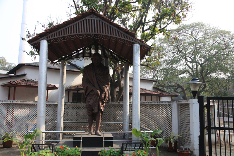 停车场门口的甘地像