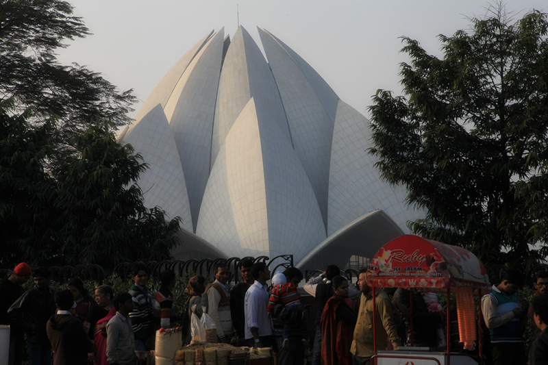本来说去胡马雍陵,可距关门时间只有1小时了,我们就改去莲花寺。到路边一看,印度人排了长达近1公里的队,司机说门口有外国人通道,进去不用排队,可是我们没找到,只在外边看看就走了。