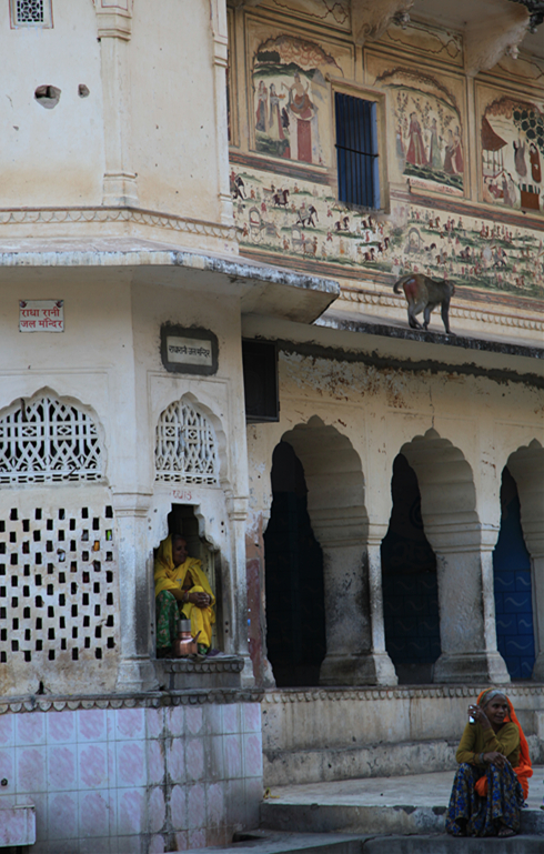 离开皇家陵墓,我们吃过午饭,就去了猴庙,一路的山路、土路,开始我们都有些怀疑这路对不对,到了一个小铁门口,车停下来,还有十几头牛在附近转悠,我们一下车,就有人走过来,说庙里很乱,不仅有猴子会往我们身上爬,还会有当地人骚扰我们,吓得我们都不想进去了,但大老远来了,也许是今生唯一的一次到访,咬牙去吧,我们也没要当地人做导游。铁门处有人卖票,相机收费,人不要钱。