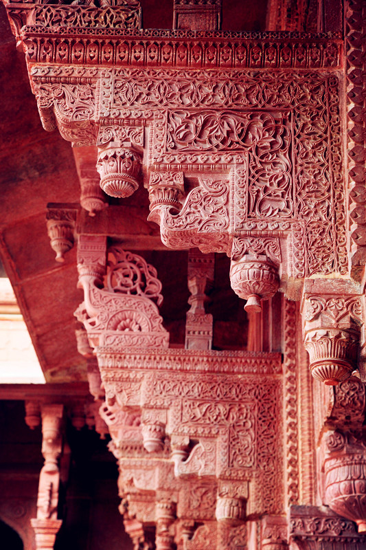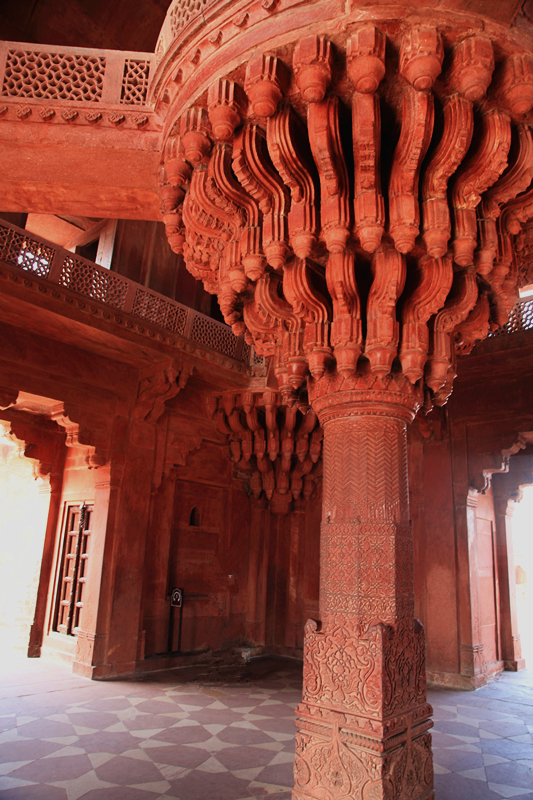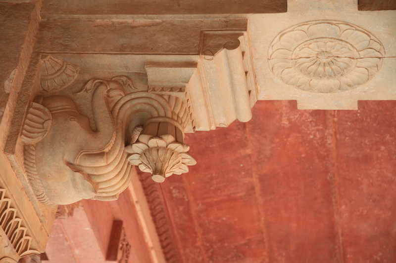 随后来到法塔赫布尔西格里城,这里要买门票,人就少多了,但城内没什么新意,特色是有一个亭子雕刻精细,另一个亭子里有个大柱子