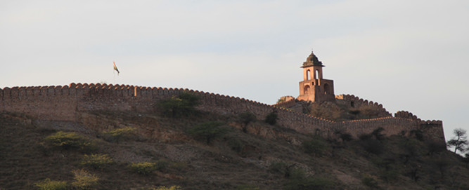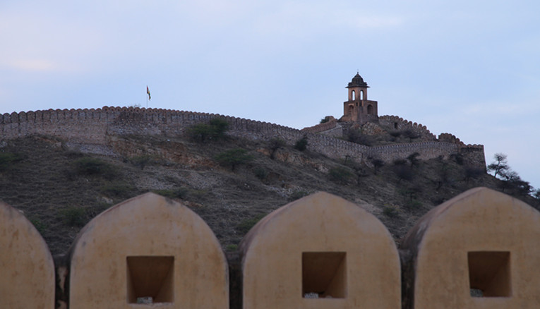 最高处看到天文台,右上方也是一个古城,但在山里很远,从斋普尔去琥珀堡的半路转进去
