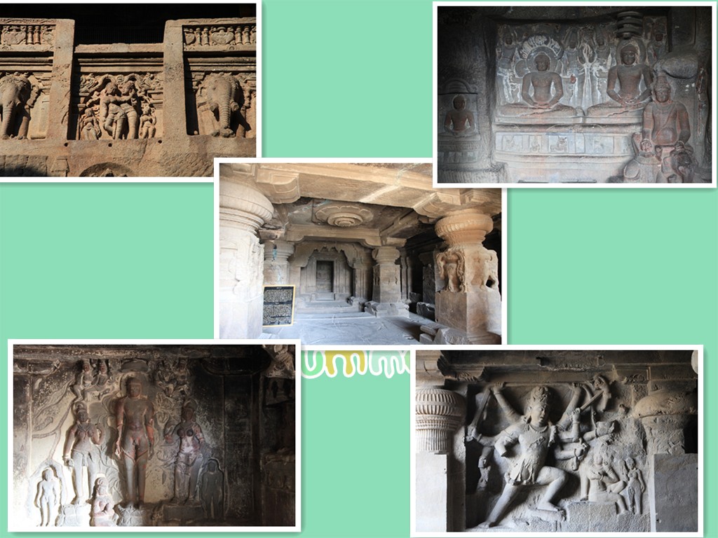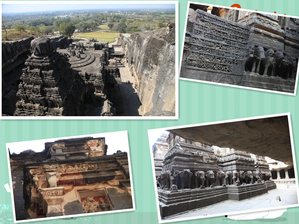 摘自百度“埃洛拉石窟 (Ellora Caves)位于印度中部马哈拉施特拉邦 (Maharashtra)的重镇奥兰加巴德(Aurangabad)西北约25至30公里处,境内有34座的石窟,佛教石窟共12座,印度教石窟有17座,耆那教石窟有5座,全长约2公里,是公元7世纪至11世纪时期,也就是早期遮娄其王朝、罗湿陀罗拘陀王朝时期的宗教建筑 ,埃洛拉以雕刻 著称,形式上呈现大乘佛教末期的特征。其中第16窟凯拉萨神庙,呈现出天人合一的完美景致,堪称建筑 艺术史上的绝色,令人叹为观止。”