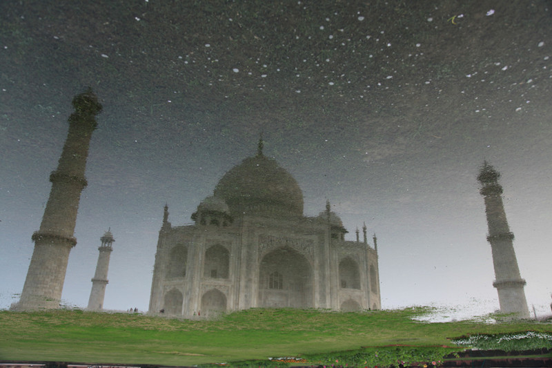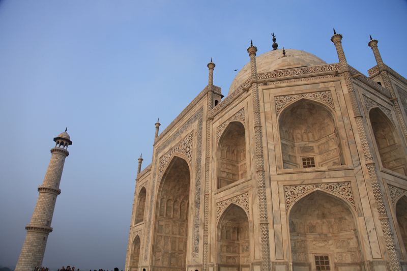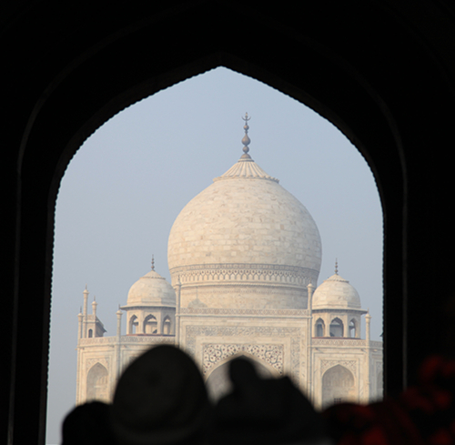 经过严密的安检,泰姬陵终于在人头和门洞间展露出来。