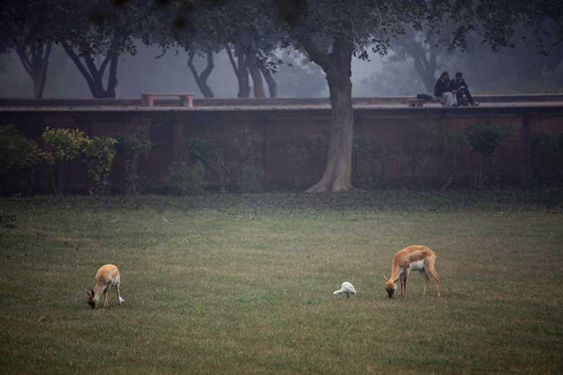很多印度人把这里当公园似的,一家人席地而坐。