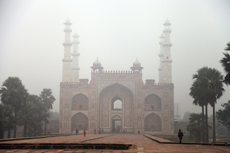 这天一早我们就来到阿克巴大帝陵,被迷雾遮掩着