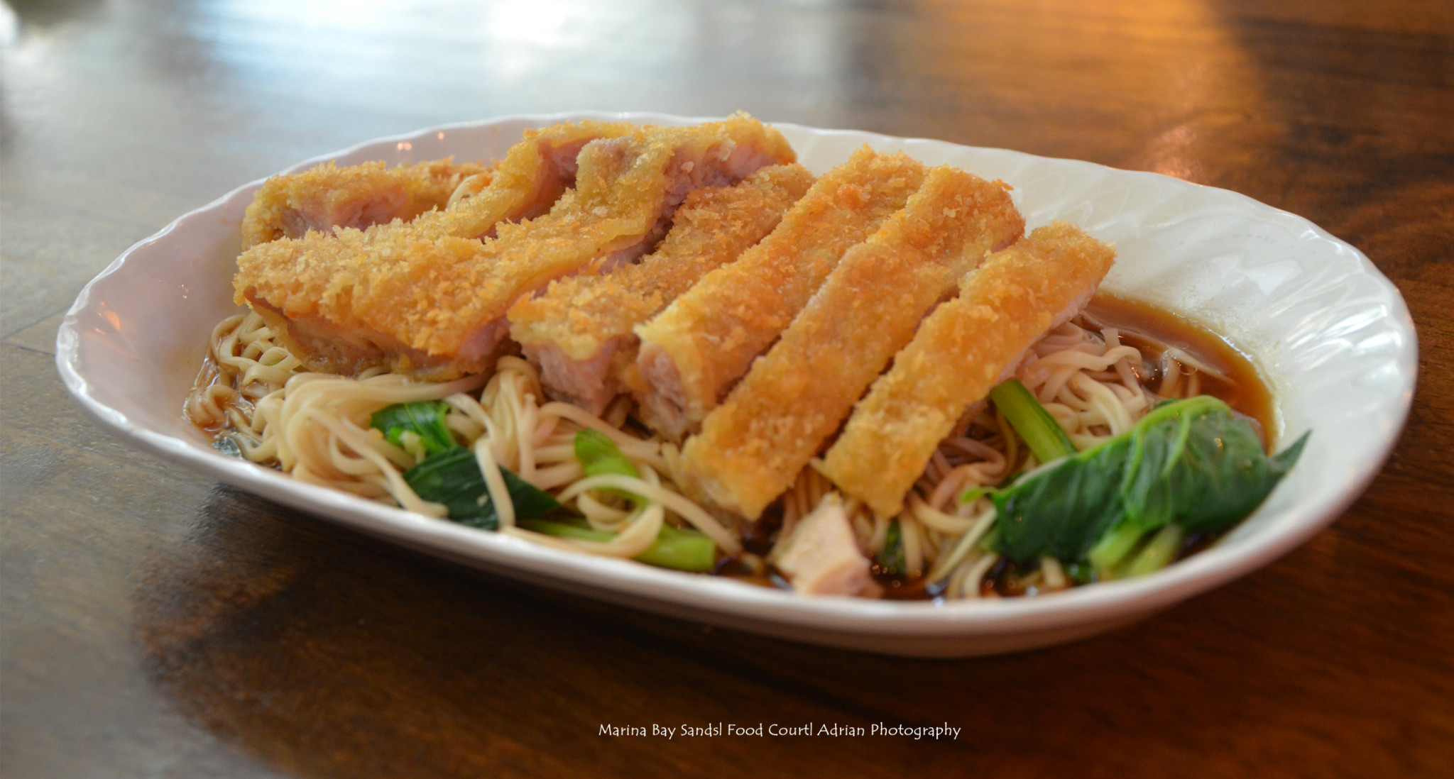 逛了好一会儿, 终于发现 Marina Bay Sand 的 Food Court 开始营业了。点了云吞面当成早餐,好吃!