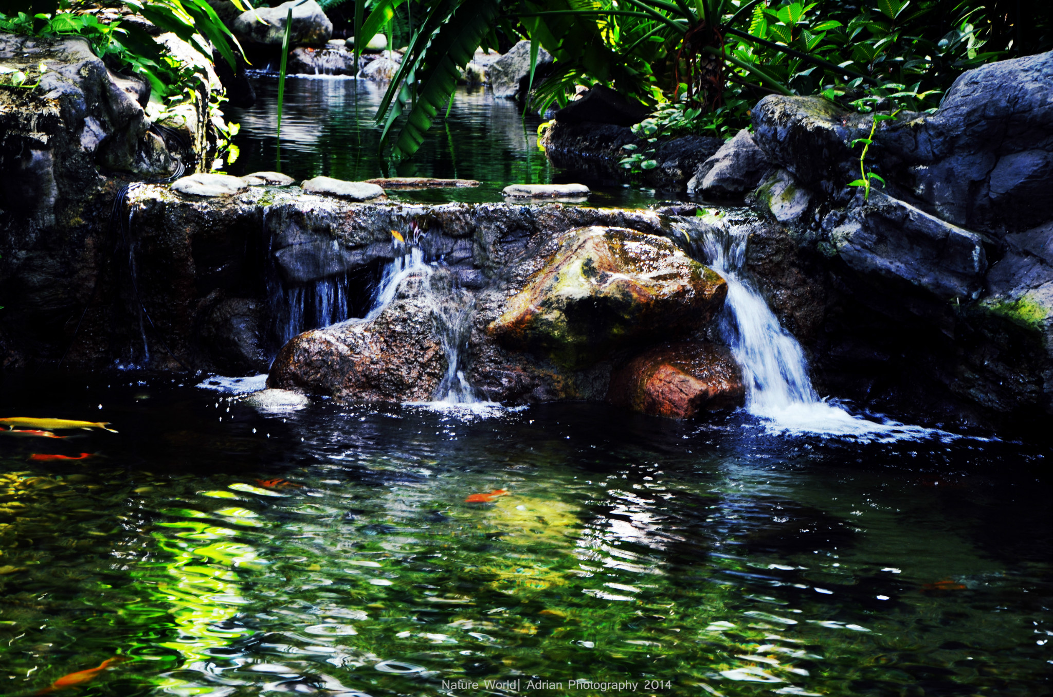 吃完了,发现原来离我们集合的时间还很长呢,所以我们到了最高的一层楼,然后出去参观。出了购物广场,就是有一个小花园。两边茂盛的槟榔树排得真整齐。