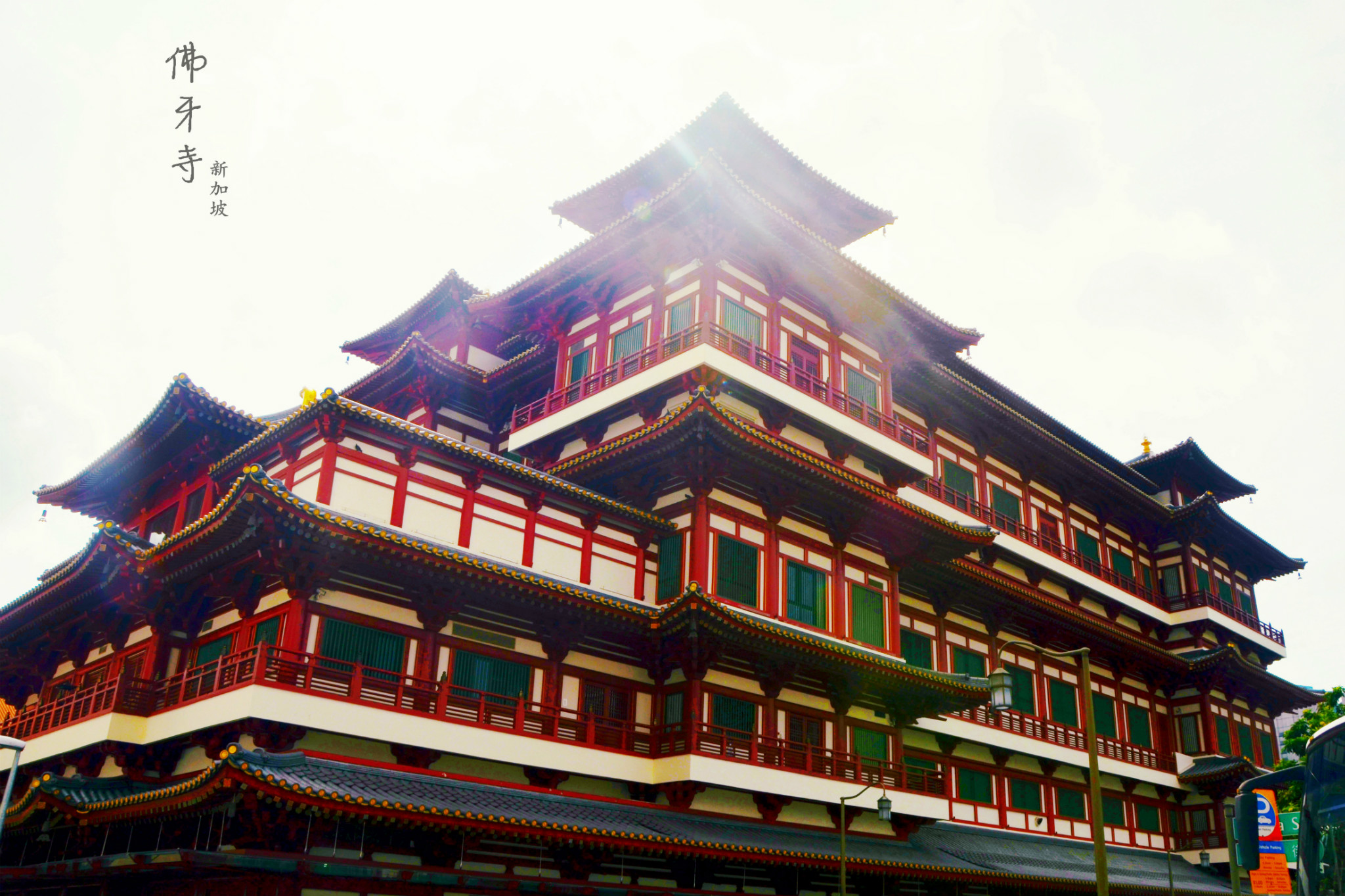 离开了摩天轮,我们到了新加坡的唐人街。首先纳入眼前的是端正庄重的佛牙寺。坐落在牛车水的停车场旁。