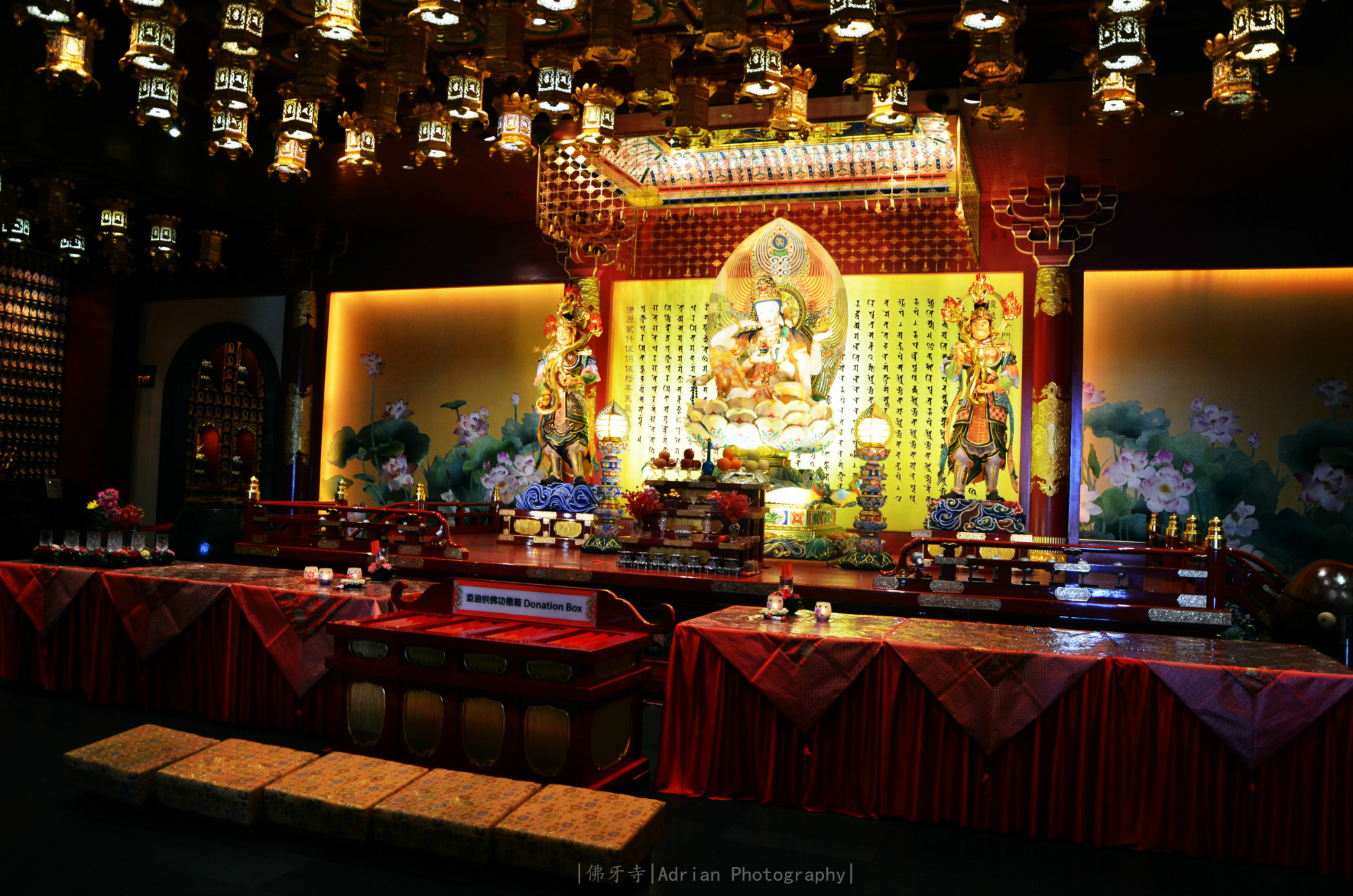 佛牙寺被分为5楼。每一层楼都能参观与拍照。惟有第四楼不能因为那里供奉著以黃金打造的佛牙舍利。入场是免费的。