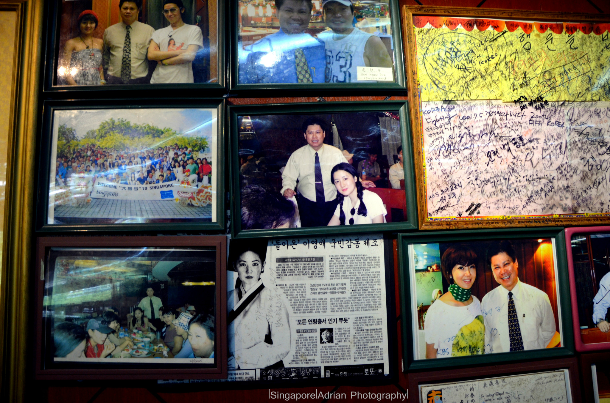 其实,他早在忽必烈戏剧上演前就开了这家餐馆。挂在墙上的都是很多名人来参观的照片。