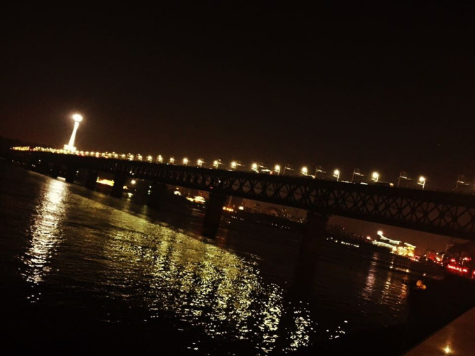 逛完昙华林之后接着就去了心中宏伟的长江大桥 到了之后形象又不那么伟岸了。可能是因为灯光不够吧 有些黑压压的 觉得或许白天来更好一些 旁边有一座没有亮灯的桥感觉更漂亮 但是还没通车 所以木有灯 之后过来的小伙伴们应该就能看到了